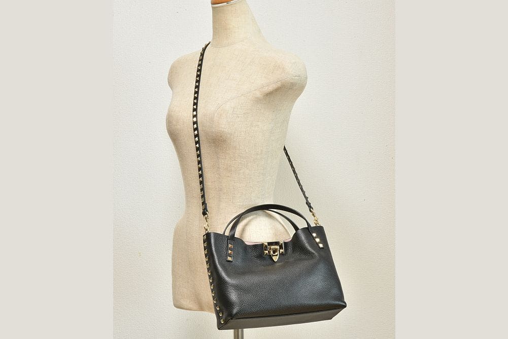 | 商品説明 | ヴァレンティノを代表するロックスタッズがデザインされた機能的な2WAYバッグでございます。金具部分に細かなスレが見られますが、全体的に使用感の少ないキレイな状態でございます。 |
