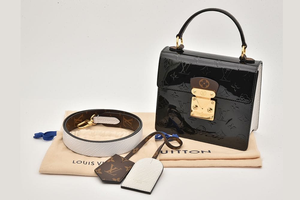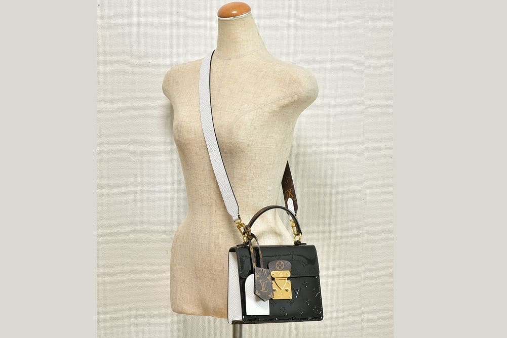 商品説明 | モノグラムヴェルニラインのコンパクトな2WAYバッグ『スプリング・ストリートPM』でございます。金具部分や内側に若干のスレが見られます。外側底面の縁に若干のベタつきが感じられますが、目立つ大きなダメージはございません。 |