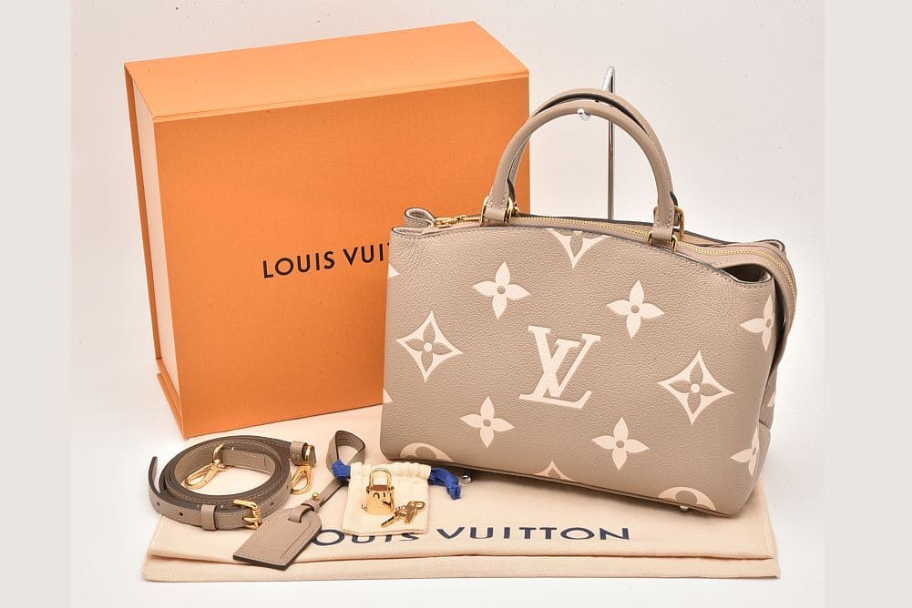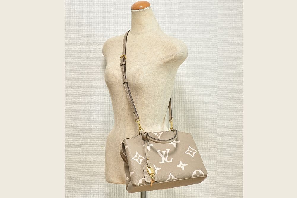 商品説明 | バイカラー モノグラム・アンプラントレザーのフェミニンな2WAYバッグ『プティ・パレPM』でございます。内側に若干のスレが見られますが、全体的に使用感のほとんど無いキレイな状態でございます。 |