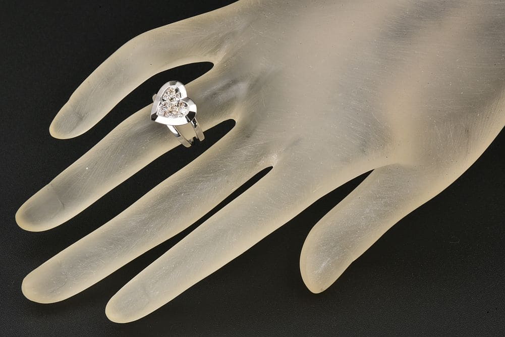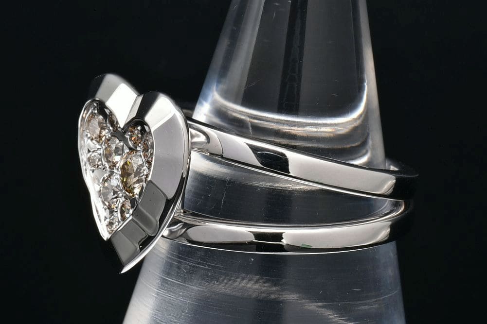 ハートの中にブラウンダイヤモンドが煌めく『アンフォゲタブル モティーフ リング』でございます。仕上げ済みの商品ですので、目立つキズ等の無いキレイな状態でございます。 |
