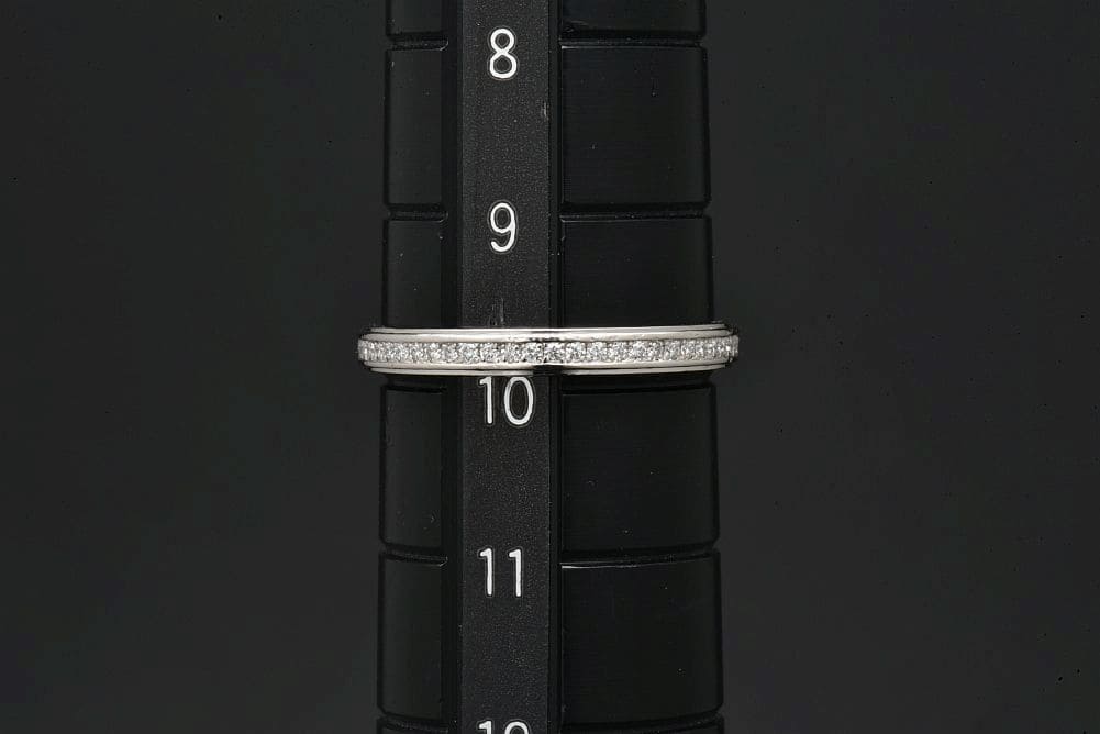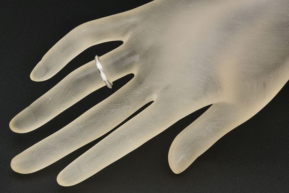 シンプルなデザインに外周を取り巻くパヴェダイヤモンドが輝く『ダムール ウェディング リング』でございます。仕上げ済みの商品ですので、目立つキズ等の無いキレイな状態でございます。 |