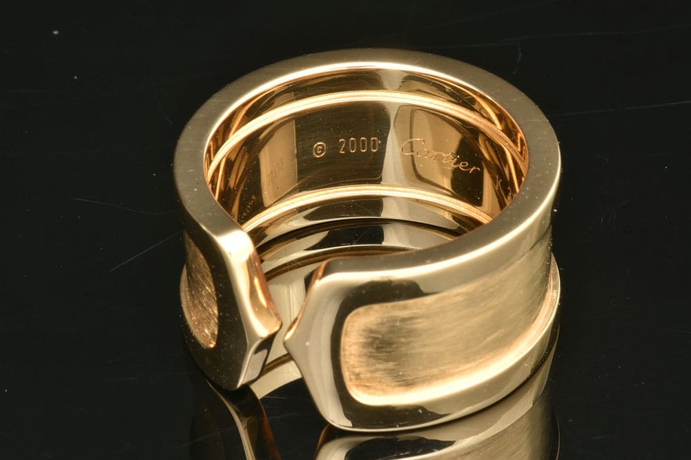 カルティエを代表する2つのCをモチーフとした『C2リング』でございます。側面刻印が薄くなっておりますが、目立つキズ等の無いキレイな状態でございます。 |