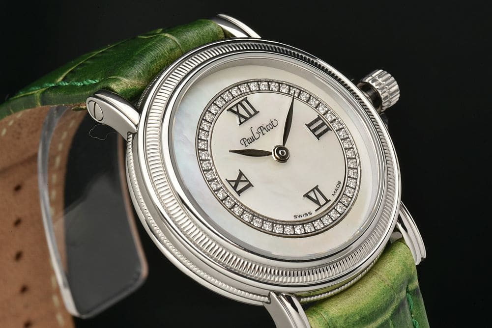 カラー | サークルダイヤモンドシルバーシェル文字盤 グリーンベルト |