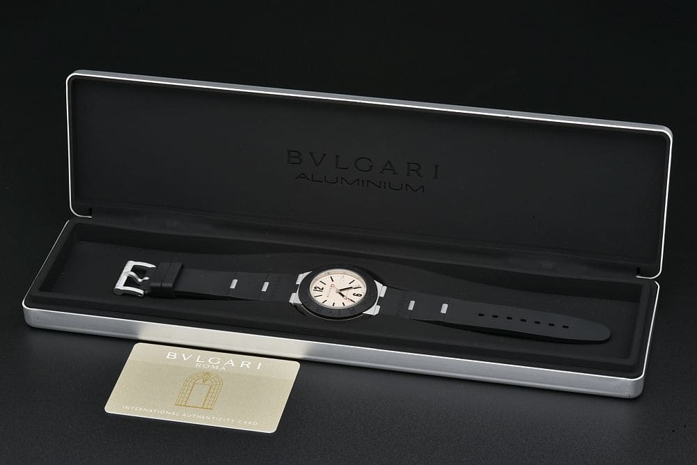 商品説明 | 高級スポーツウォッチの概念を変えた、アルミニウム ウォッチ メンズ オートマチック 103382(BB40AT)でございます。ケースや尾錠に、僅かにスレや小傷はございますが、ベルトなどラバー部分は大変キレイな状態でございます。ガラスコーティングにスレがあるものの、ガラス自体の傷は無く、保証書などの付属品も揃っております。 |