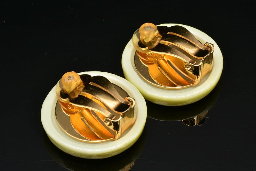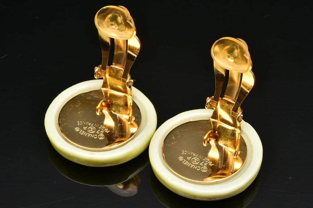 シャネル CHANELロゴ ボタン型 イヤリング ピアス ライムグリーン ゴールド GP