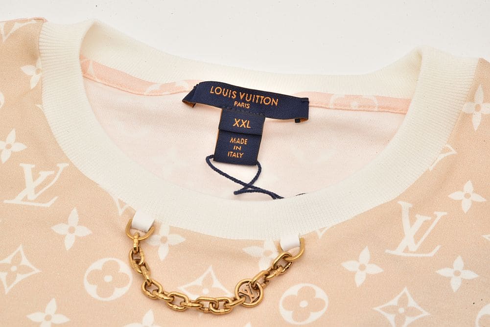 | 商品説明 | 3色のモノグラム・パターンでデザインされたTシャツに首元のLVチェーンがアクセントのTシャツでございます。 |