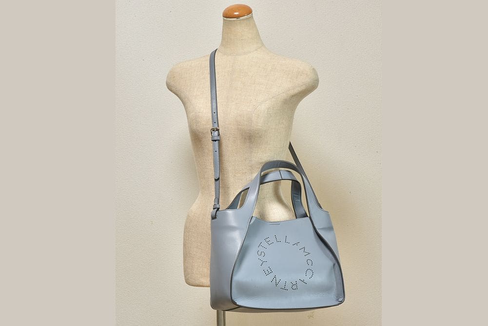 ステラマッカートニー ロゴ クロスボディ トートバッグ ショルダーバッグ ヴィーガンレザー ライトブルー 513860【新品同様】
