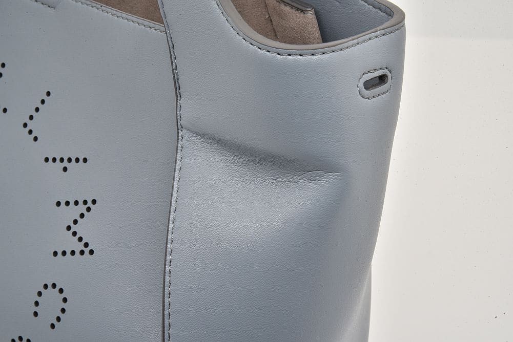 「STELLA McCARTNEY」ロゴがパンチングされた『ロゴ クロスボディ トートバッグ』でございます。型崩れやシワ、レザーの一部に金具による押し傷が見られますが、目立つダメージは無く使用感の無い美品でございます。 |