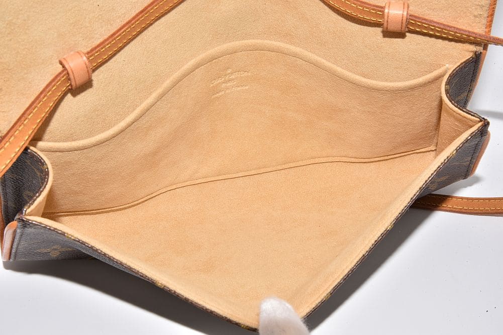 | 商品説明 | 取り外し可能なショルダストラップで機能的にお使いいただける『ポシェットツインGM』でございます。ヌメ革部分に色ヤケやスレ、ボタンにスレや劣化が見られます。若干の型崩れや内側にスレ、ショルダーストラップにひび割れやボタンの緩み等の使用感が見られますが、まだまだお使いいただける商品でございます。 |