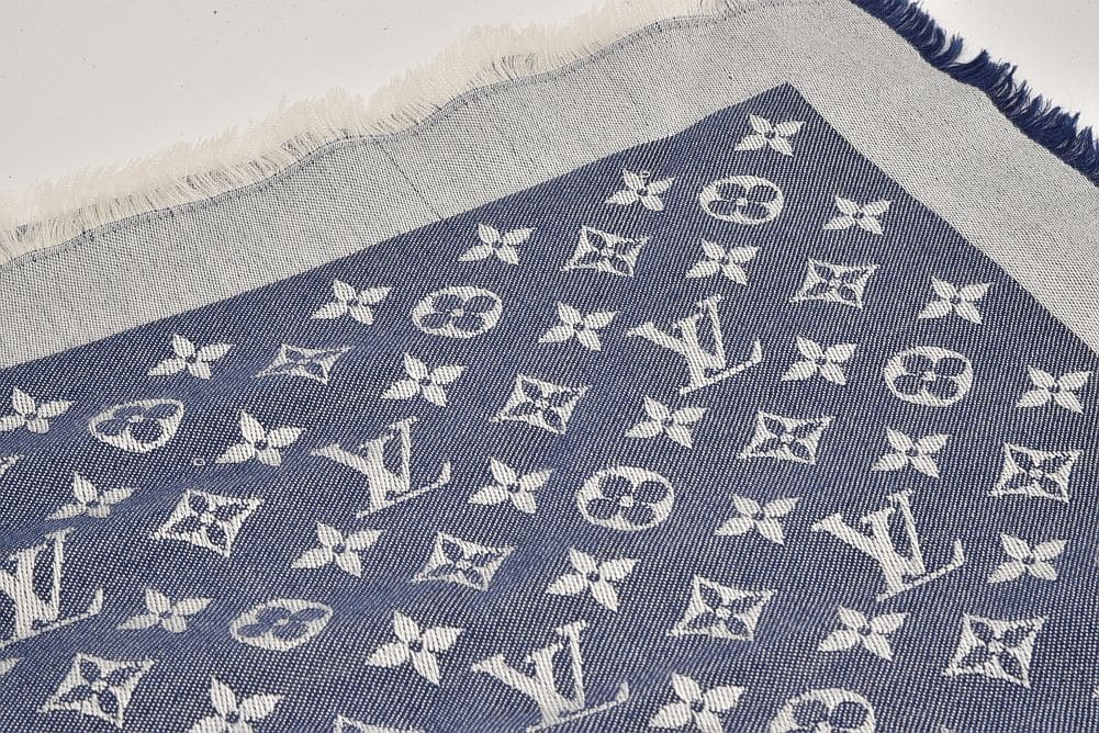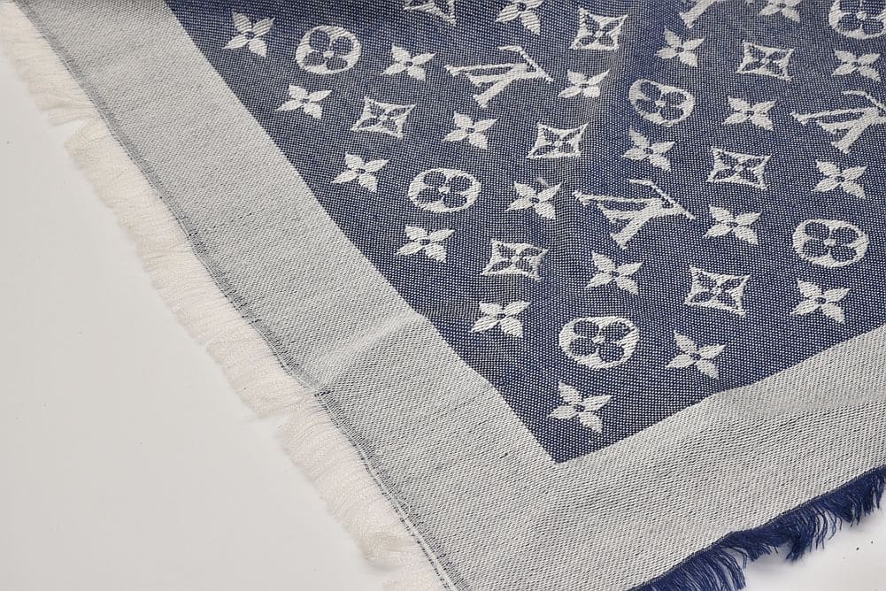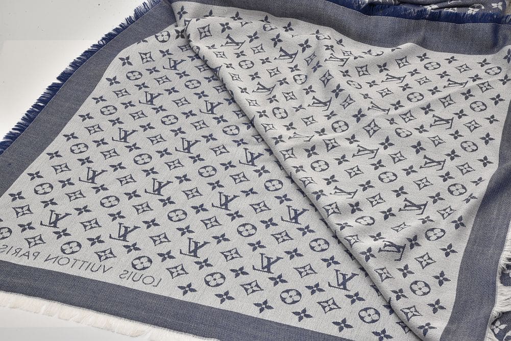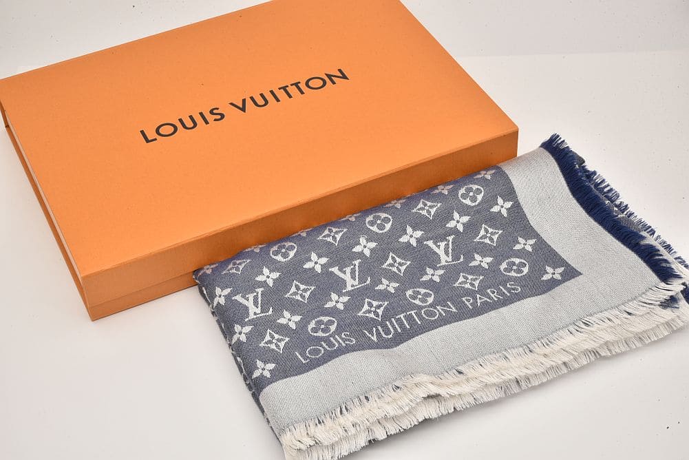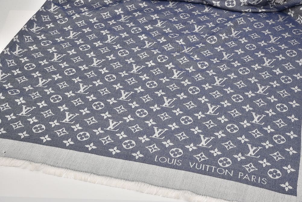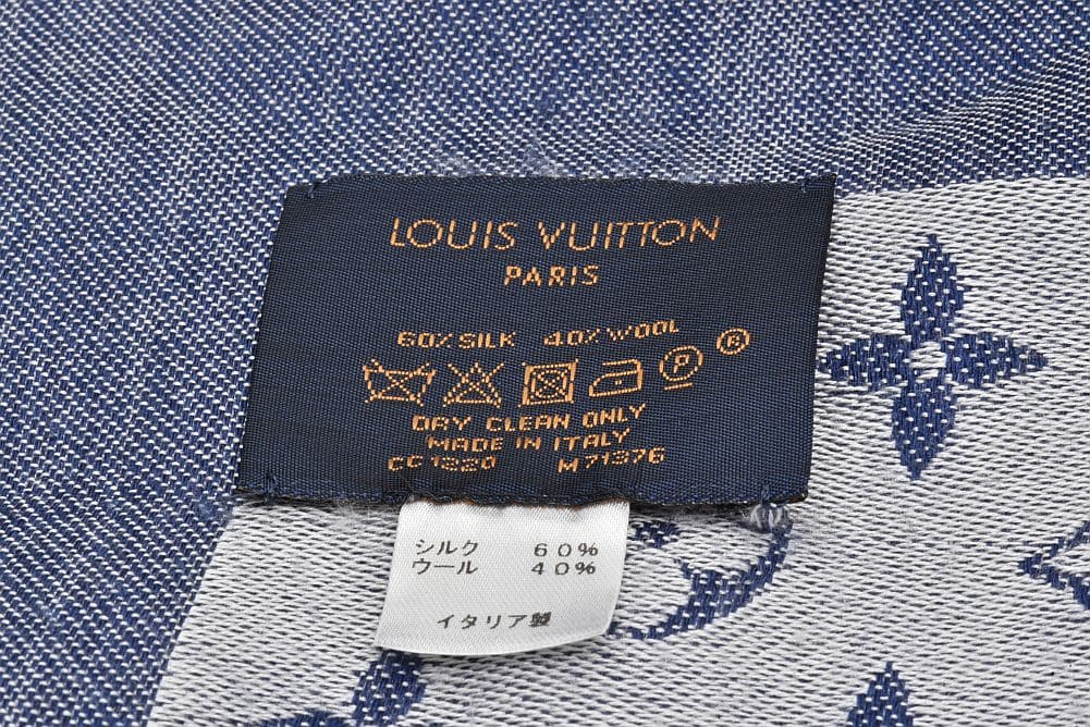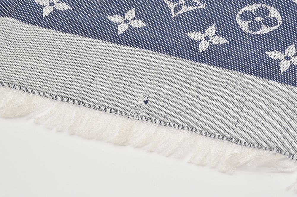 ヴィトン ショール モノグラム デニム ストール シルク ウール ブルー M71376