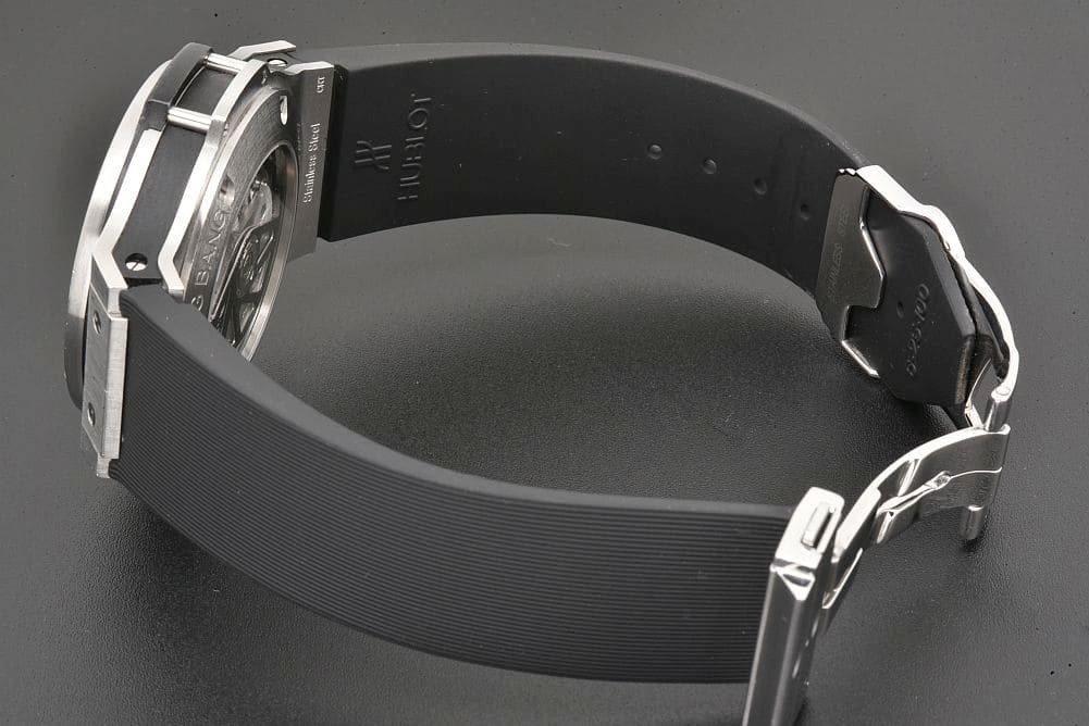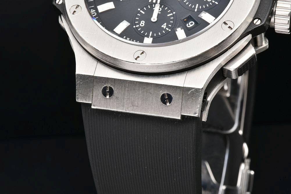 | 商品説明 | ステンレスケースにラバーストラップを組み合わせたシックな印象のビッグバン エボリューション 301.SX.1170.RX でございます。ステンレス部分に使用に伴うスレや小傷が見られますが、深い傷は無く全体的にキレイな状態でございます。ラバーベルトに香水の残り香があるものの、使用上問題となるダメージは無くそのままお使い頂けます。ガラスコーティングにスレ傷がございますが、ガラス自体の傷はございません。 |