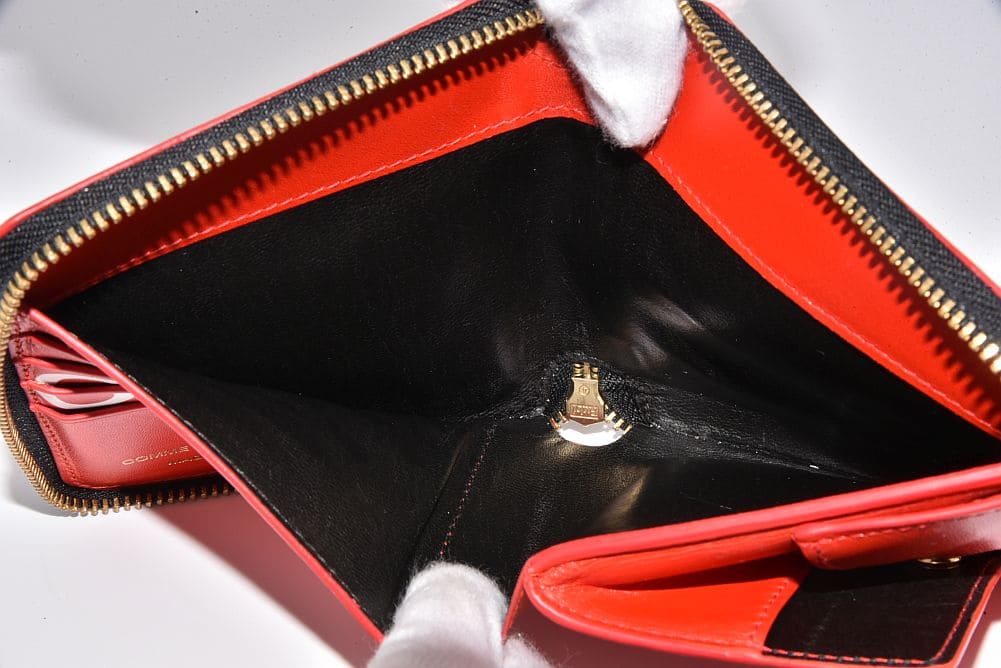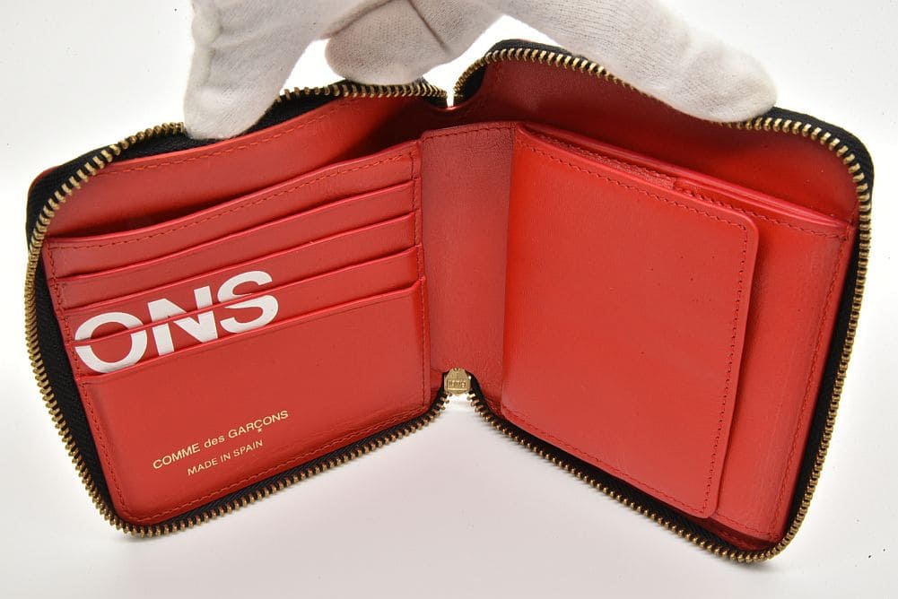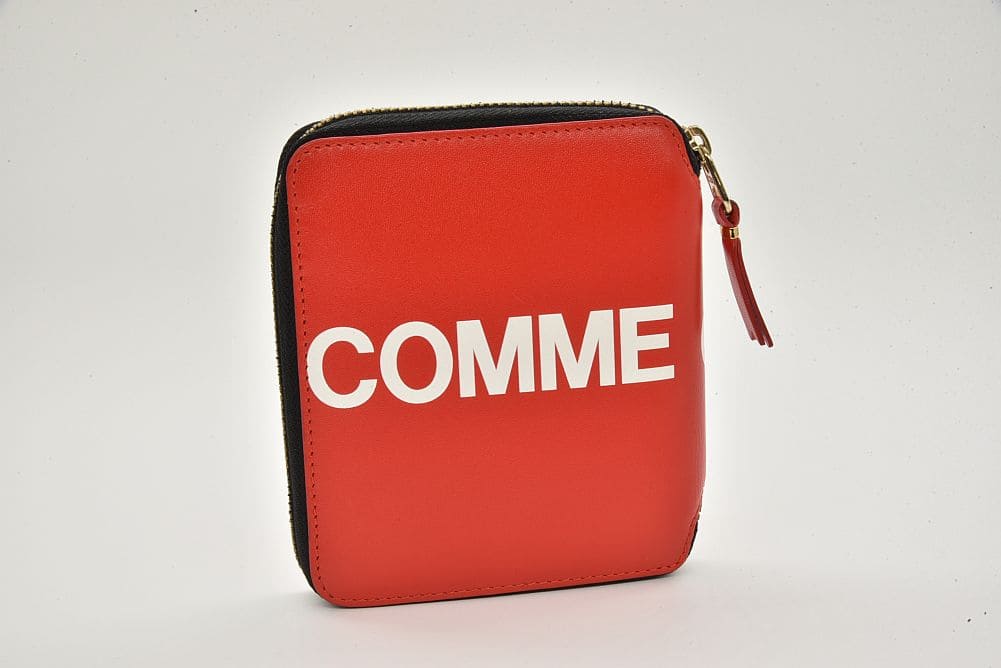 コムデギャルソン HUGE LOGO ヒュージ ロゴ 二つ折り財布 コンパクトウォレット ラウンドファスナー レッド