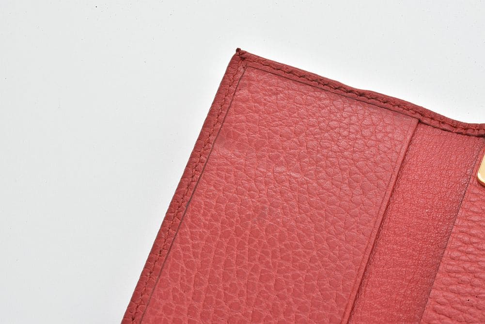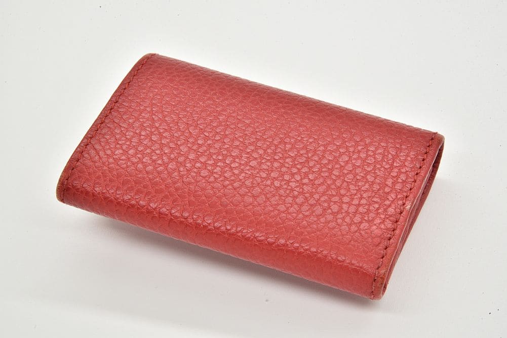 フロントに「ダブルG」の金具をあしらった『ダブルG キーケース』でございます。角スレや若干の型崩れ、内側に僅かな押し跡がございます。金具部分にキズや変色が見られますが、目立つ大きなダメージはございません。 |