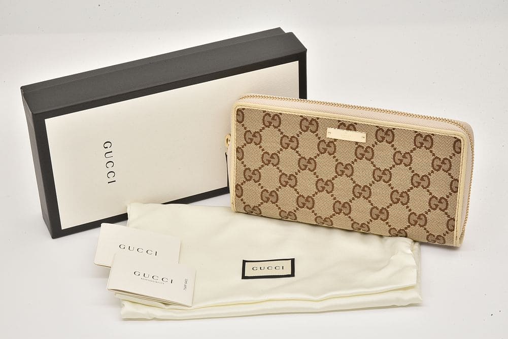グッチ GGキャンバス ラウンドファスナー長財布 ベージュ アイボリー 307980【未使用】
