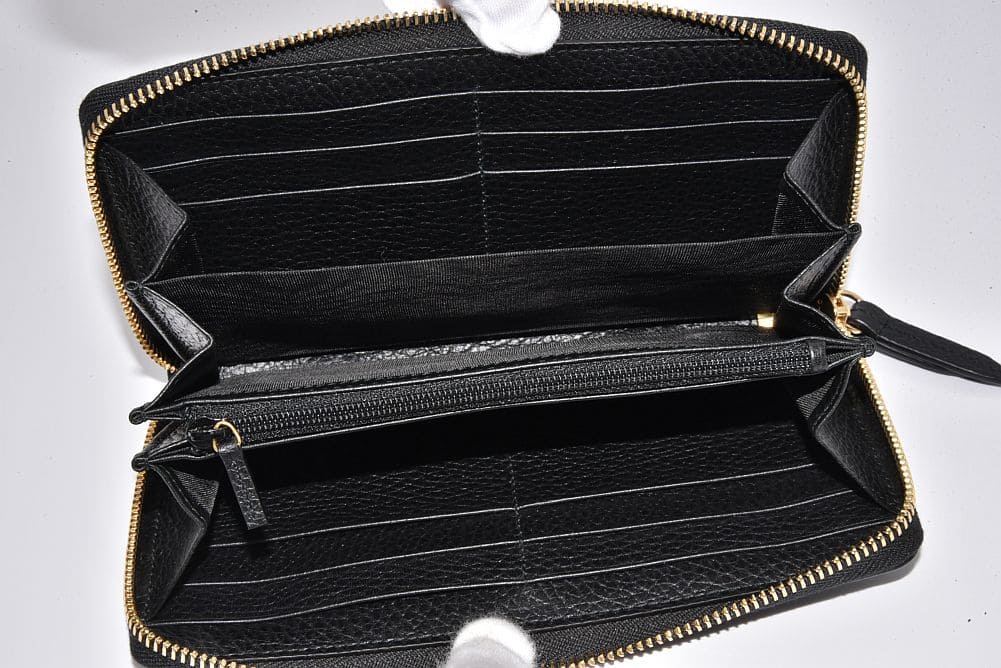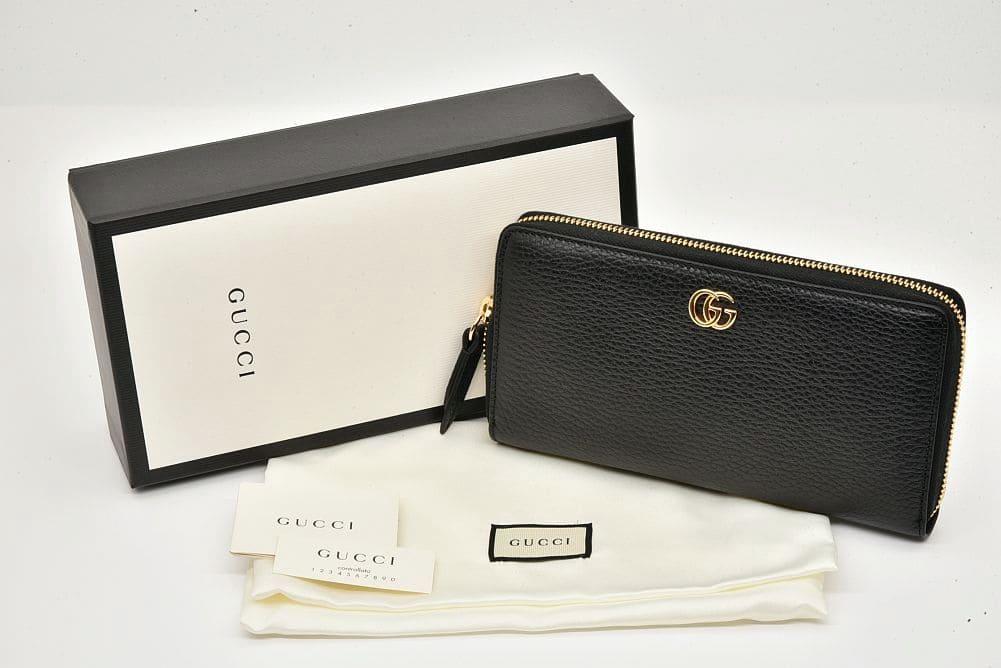 フロントに「ダブルG」の金具をあしらった『ダブルG ジップアラウンドウォレット』でございます。未使用の商品でございます。 |