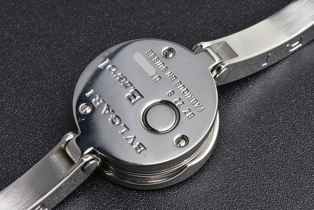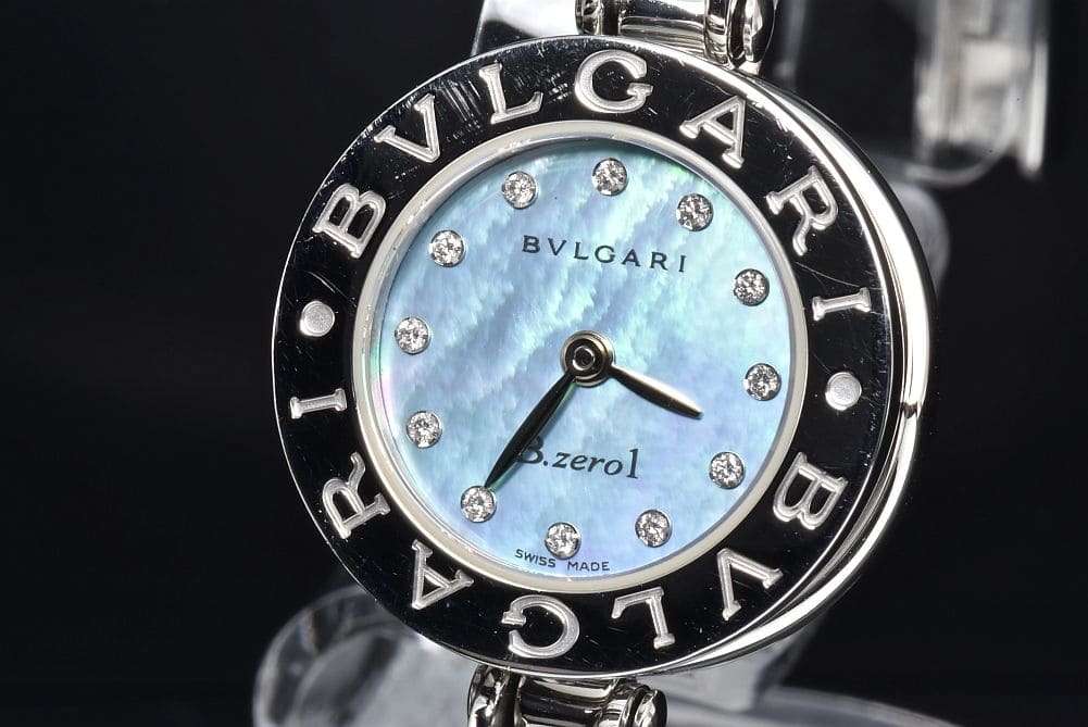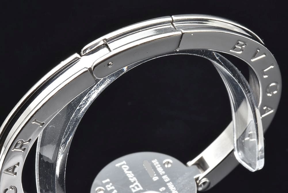 | 商品説明 | ダイヤモンド12Pブラックシェル文字盤、バングルタイプのビーゼロワンウォッチ レディース クォーツ BZ22BSS/12.S(BZ22S)でございます。使用に伴うスレや小傷はございますが、深い打痕等は無く全体的にキレイな状態でございます。ガラスの傷はございません。 |