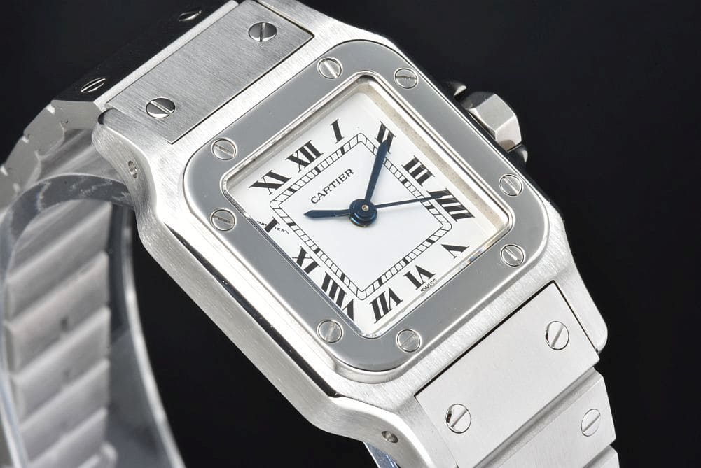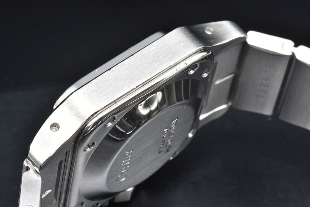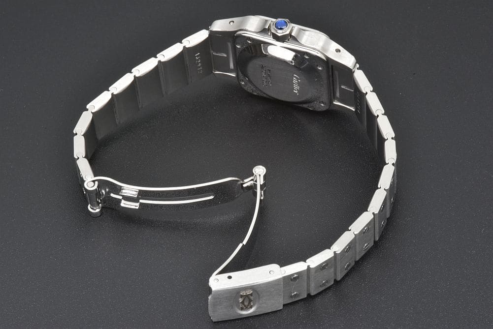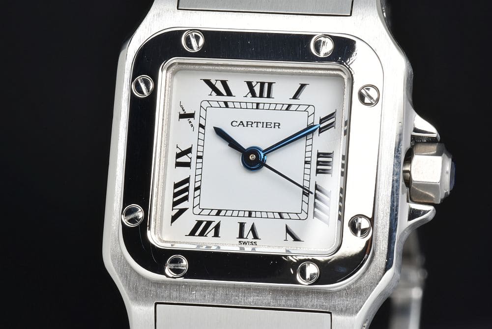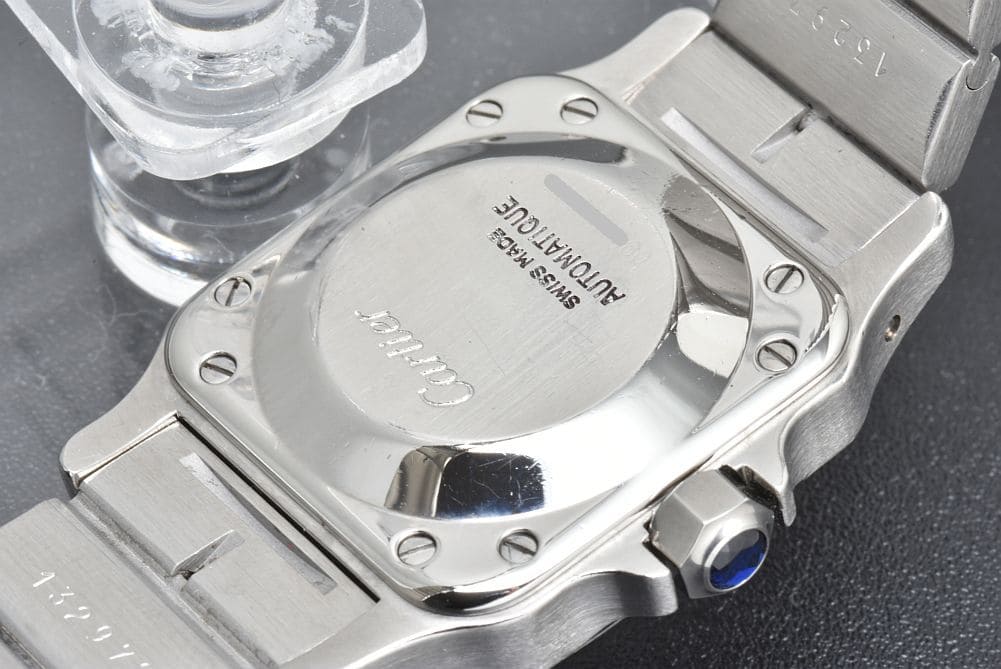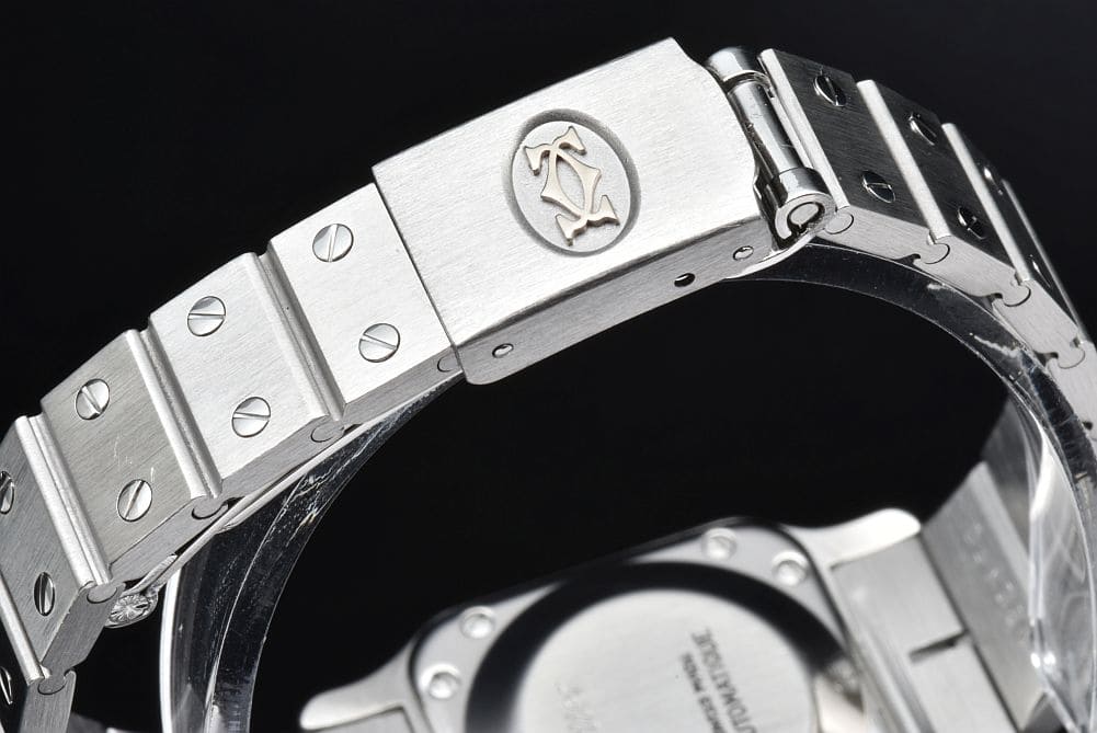 | 商品説明 | シルバーローマ文字盤のサントスガルベ SMサイズ レディース オートマチックでございます。文字盤に僅かなヒビがみられますが、オーバーホールをしておりますので安心してお使い頂けます。新品仕上げもしており、裏蓋など僅かな残り傷程度で大変キレイな状態でございます。リューズカボションやガラスの傷はございません。 |