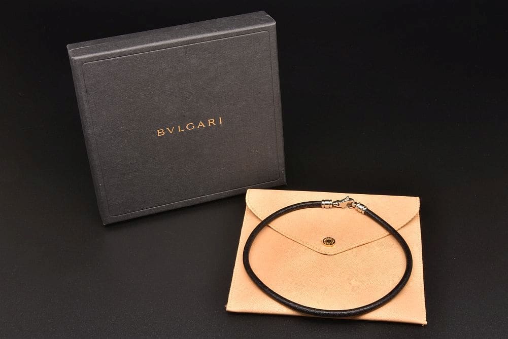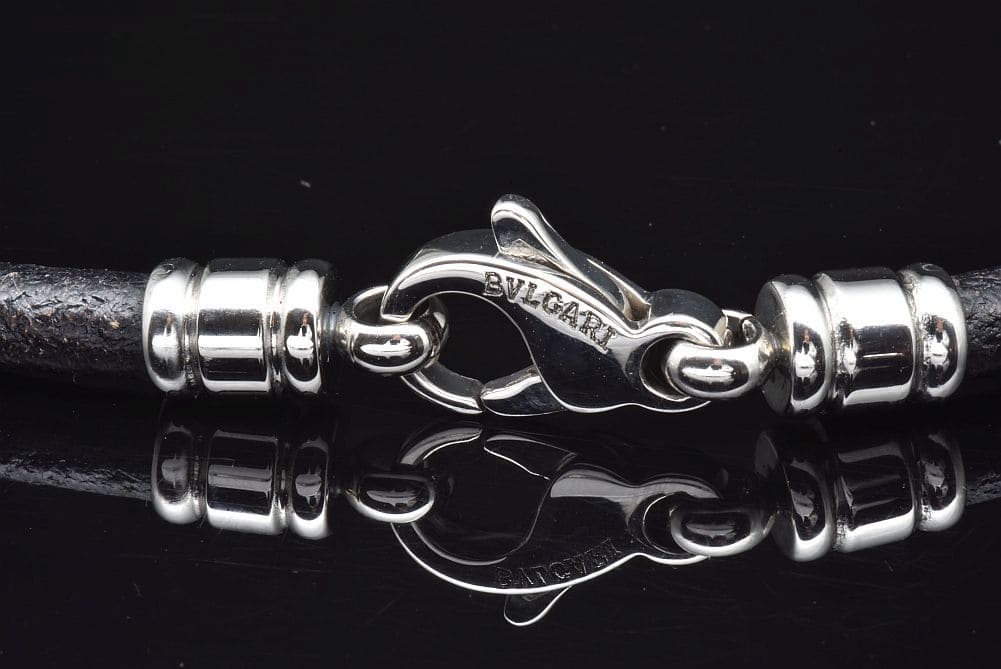 ブルガリ レザー コード チョーカー ネックレス ステンレス ブラック
