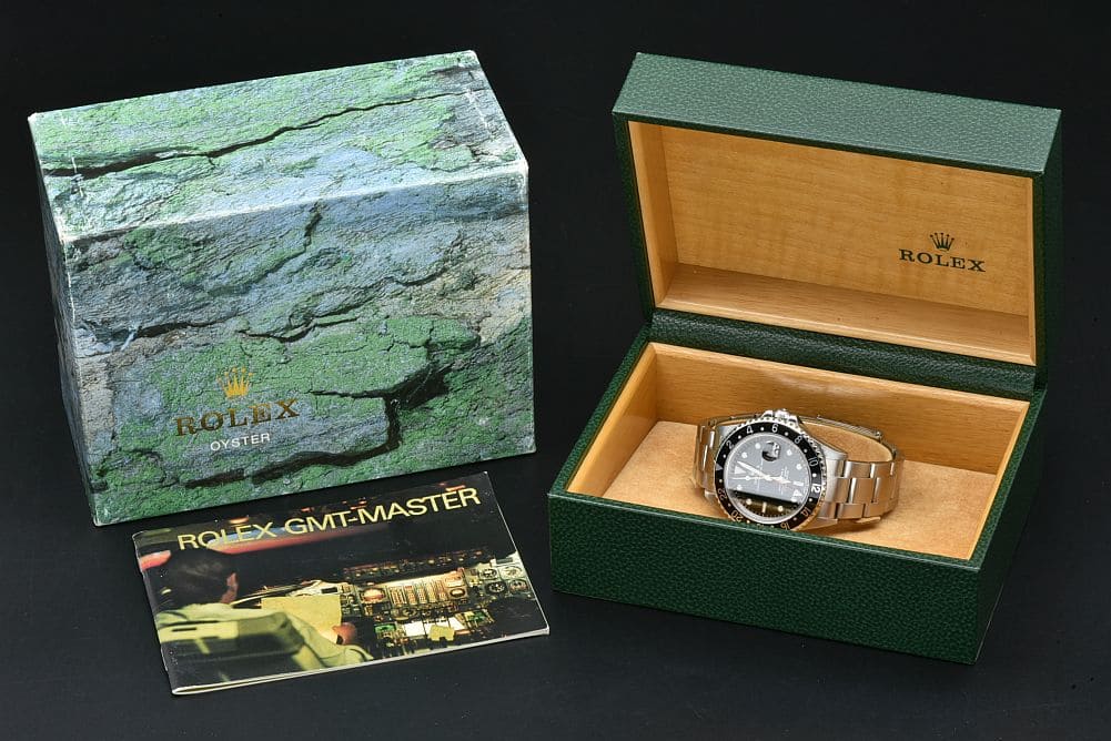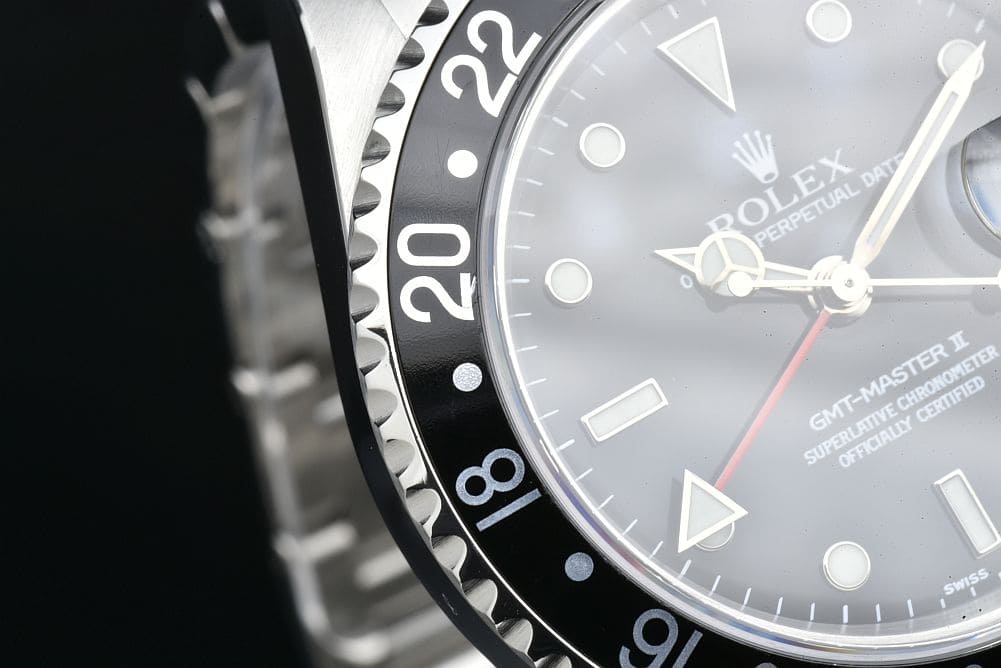 | 商品説明 | 販売終了後の今でも非常に人気の高い、黒/黒ベゼル、GMTマスター2 16710でございます。文字盤の文字(レター)が通常より太くなっております。オーバーホールをしておりますので安心してお使い頂けます。新品仕上げをしており、ベゼルのスレや僅かな残り傷程度で大変キレイな状態でございます。ガラスに肉眼での確認が困難な面スレがございますが、ブレスの伸びは僅かに感じる程度でございます。 |