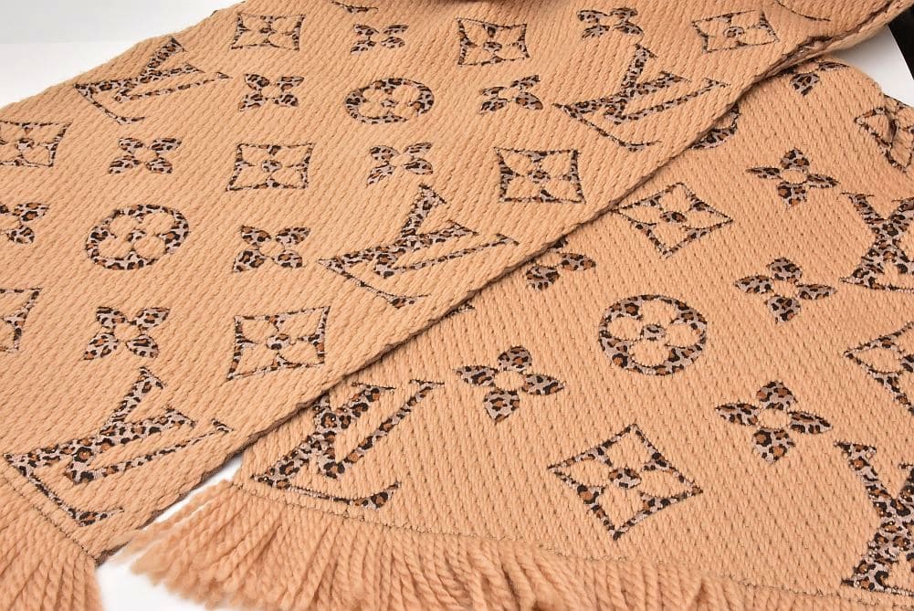 ヴィトン エシャルプ ジャイアント モノグラム マフラー ストール スカーフ レオパード ヒョウ柄 ベージュ ブラウン M75884