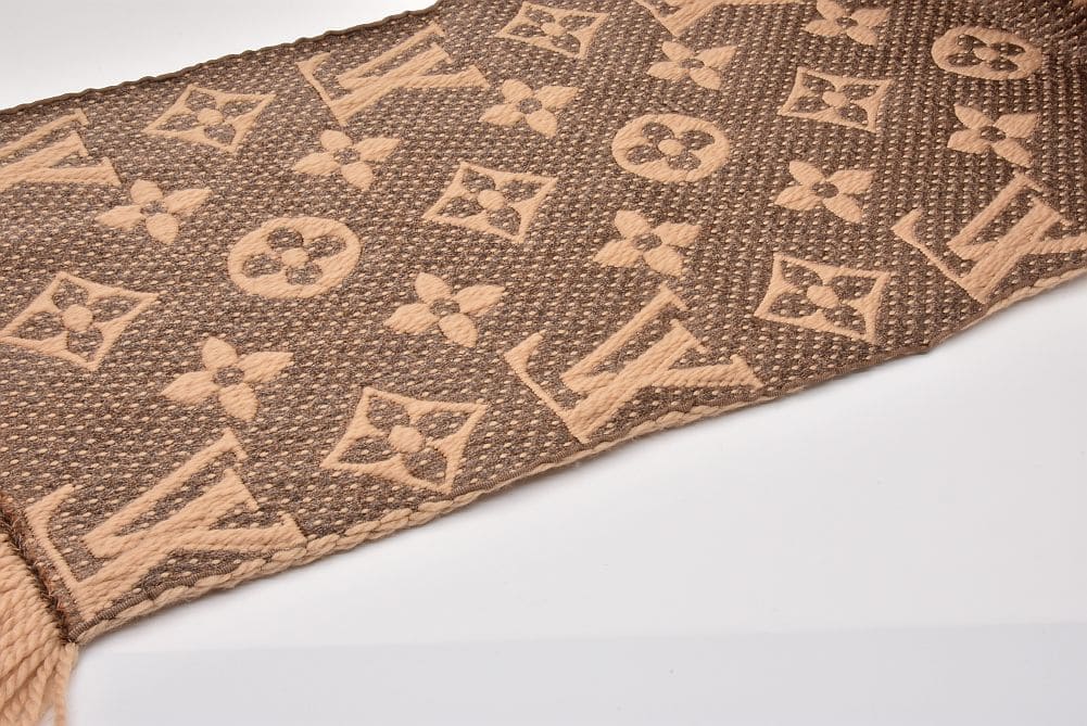 アイコニックなモノグラム・パターンのヒョウ柄が印象的な『エシャルプ・ジャイアント モノグラム』でございます。表面に少々の毛羽立ち、縁の僅かな反りがございますが、目立つダメージはございません。 |