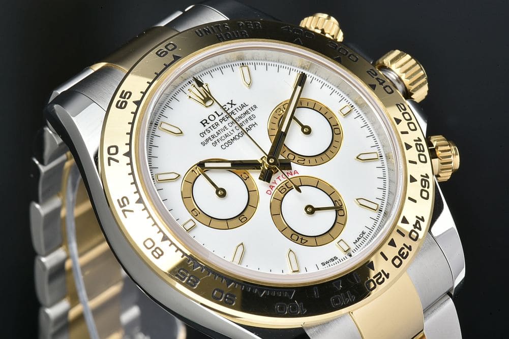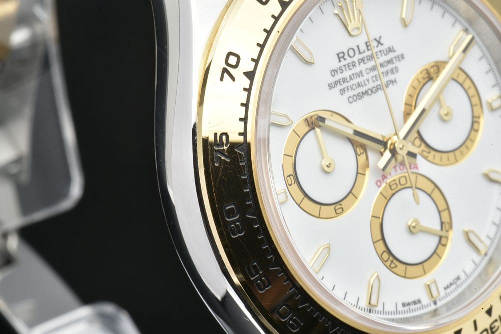 | 商品説明 | ロレックスによる完全自社製造キャリバー4131搭載のホワイト文字盤、イエローロレゾール コスモグラフデイトナ 126503でございます。ベゼルやバックルなど使用に伴うスレや小傷はございますが、深い打痕等は無くキレイな状態でございます。2024年購入品で、ガラスの傷は無く保証書などの付属品も揃っております。 |