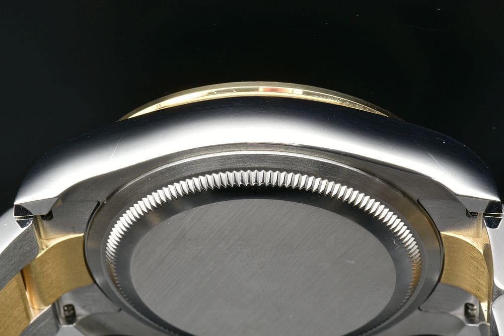 | 素材 | ステンレススチール/K18YG(イエローゴールド) サファイヤクリスタル風防 |
