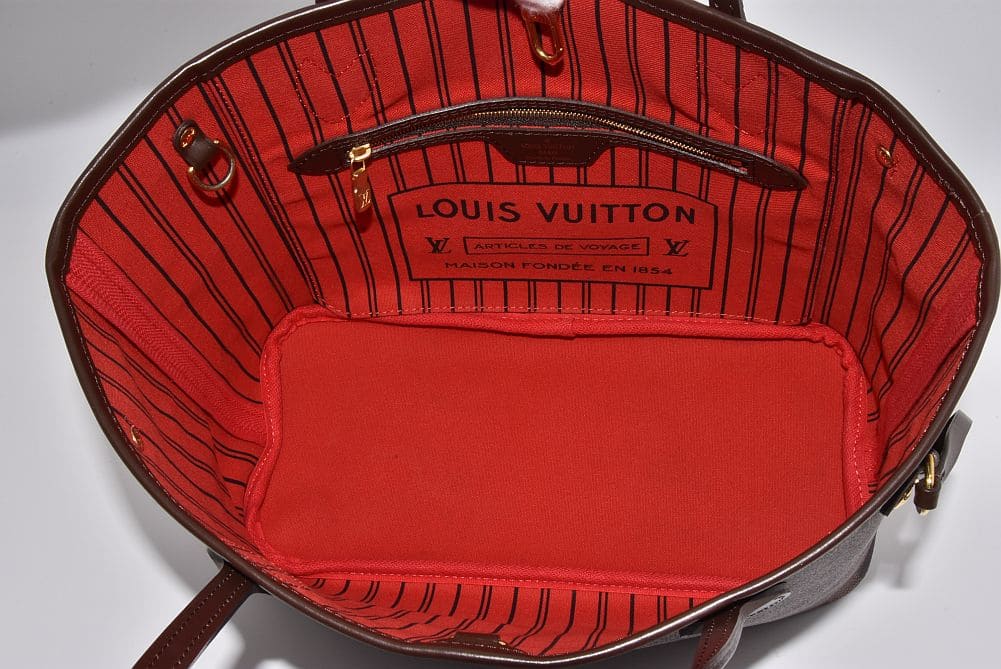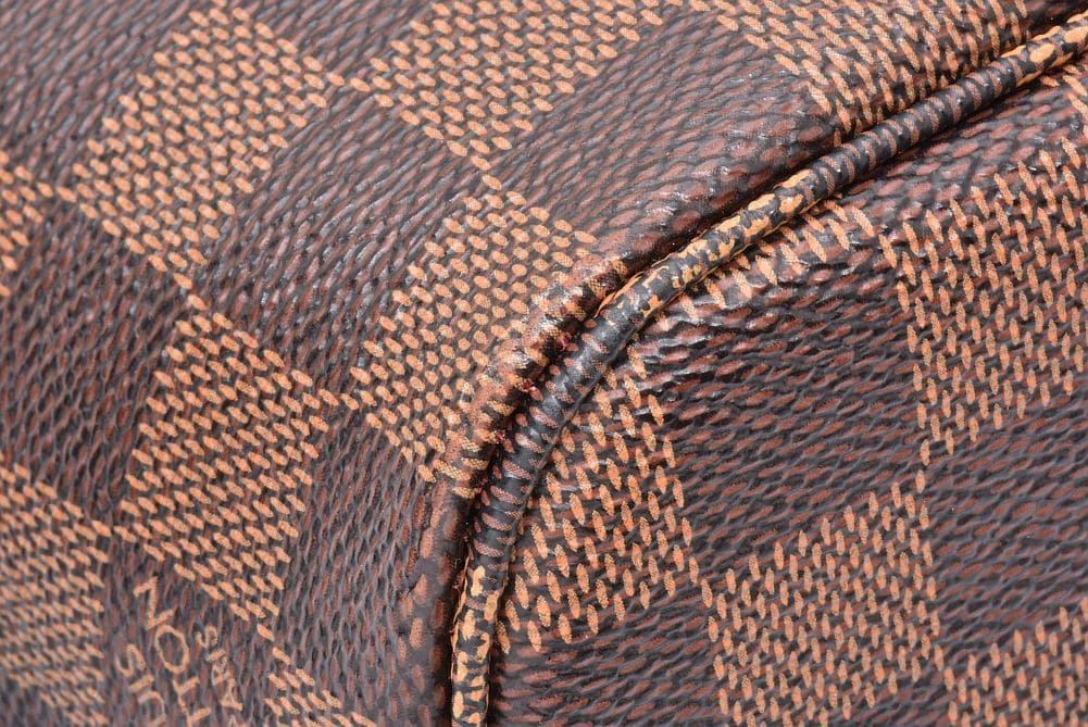 ポーチが付いた軽量で機能的なトートバッグ『ネヴァーフルPM』でございます。若干の角スレや金具部分に細かなスレ、内側に薄いシミ、ハンドルに若干のシワが見られますが、目立つ大きなダメージはございません。 |