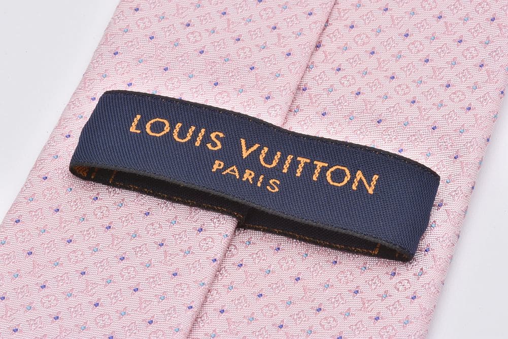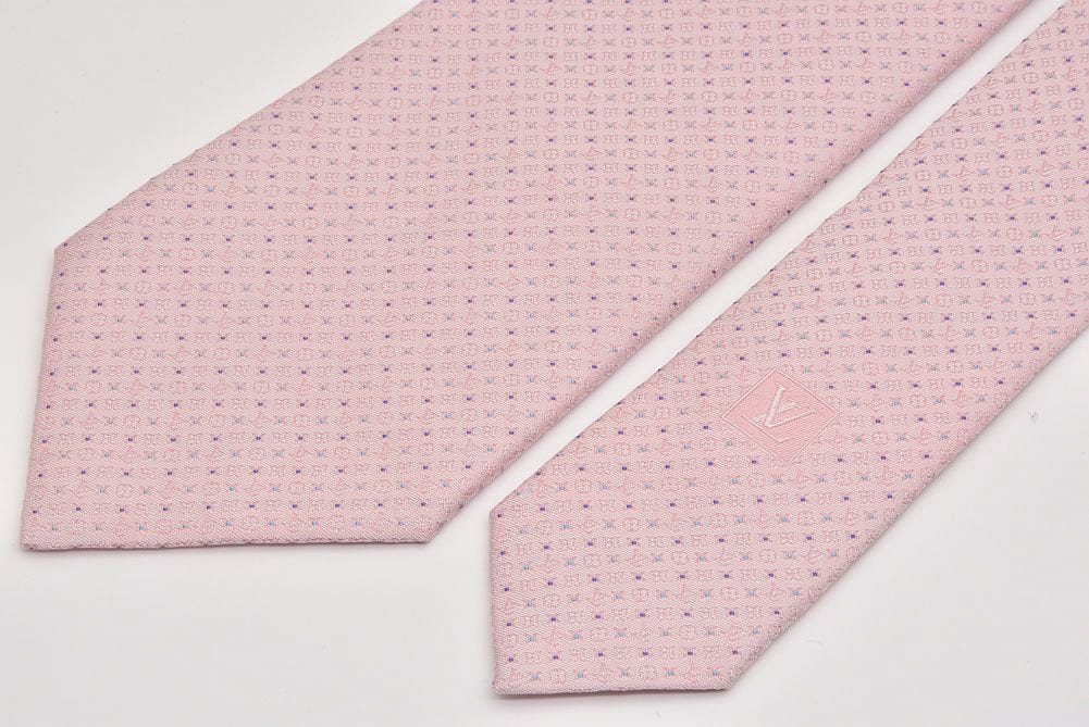 ヴィトン ネクタイ クラヴァット モノグラム ナノドッツ シルク ピンク M76744 【新品同様】
