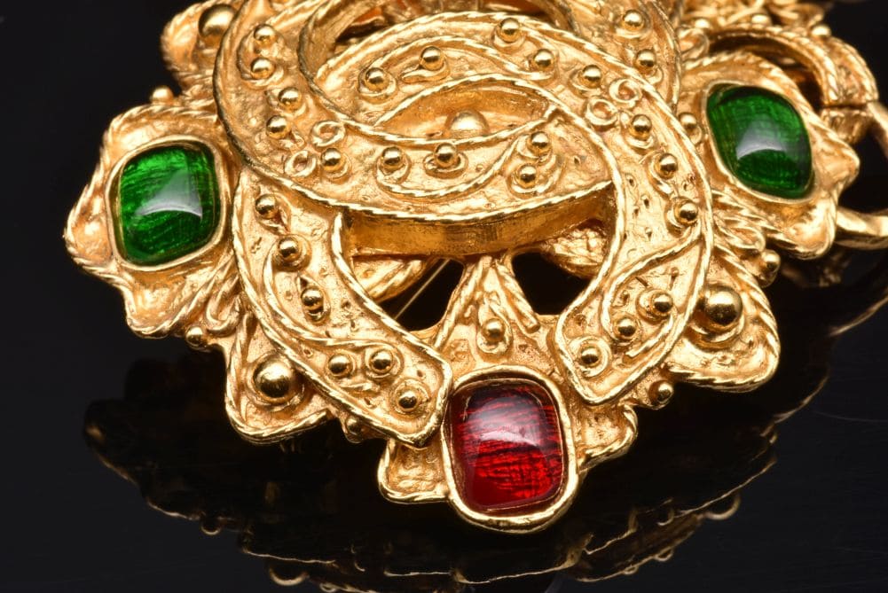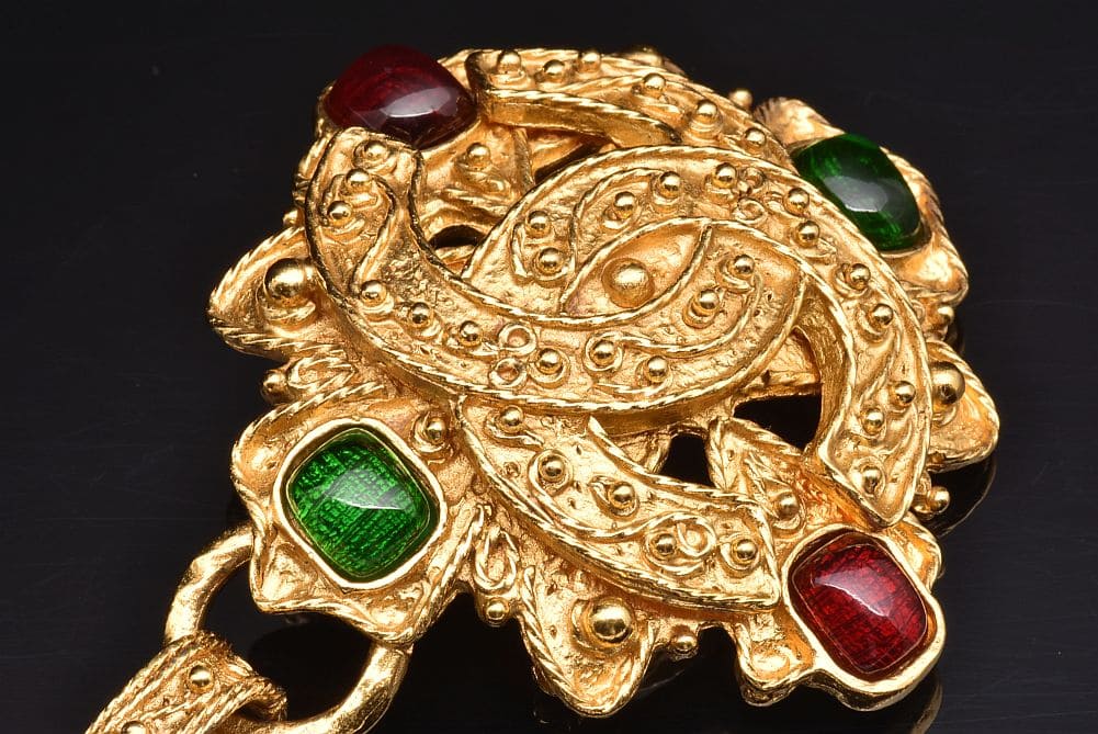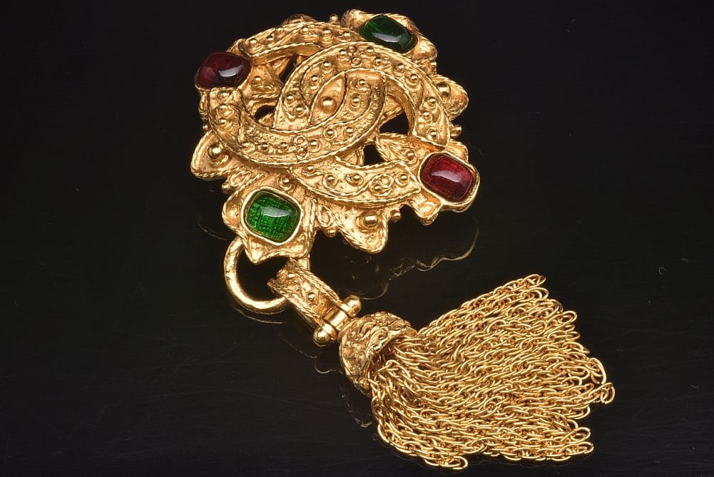 シャネル グリポア ブローチ ココマーク フリンジ GP ゴールド ガラス【ヴィンテージ】