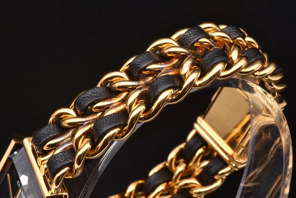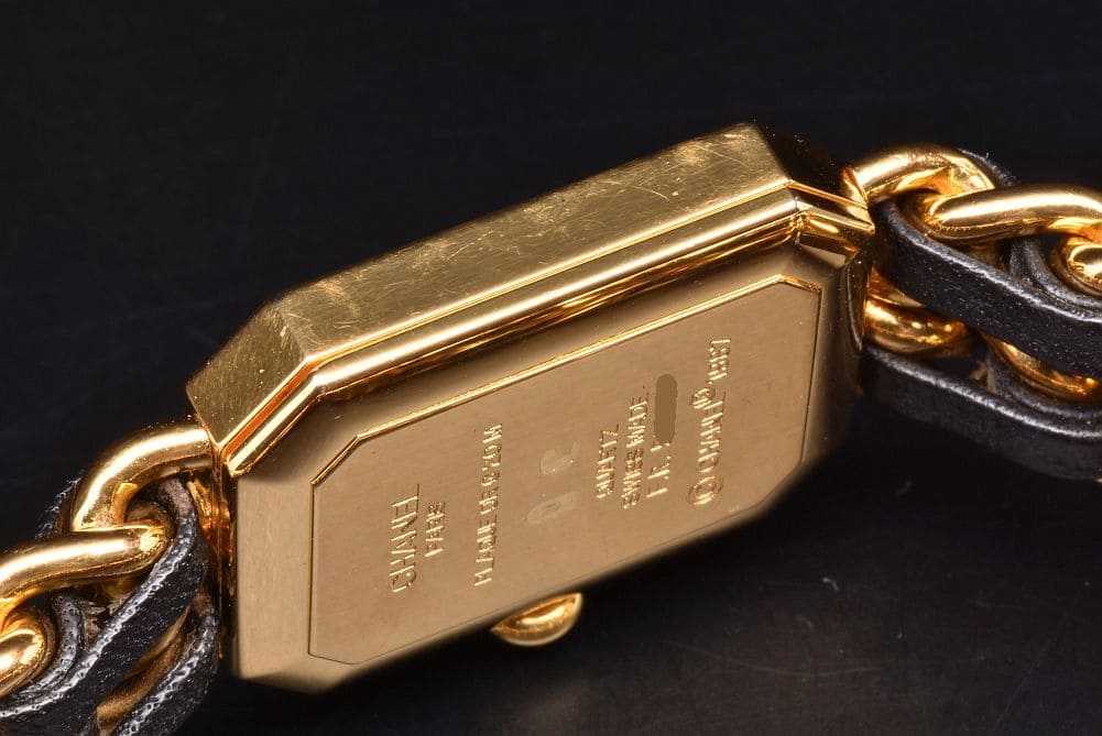 | 商品説明 | シャネルのロングヒットモデル、プルミエール レディース クォーツ H0001 Lサイズでございます。ケース・ブレスGP部分などにスレ傷・変色が見られ、レザーのスレもございますが、全体的にキレイな状態でございます。ガラスの傷はございません。 |