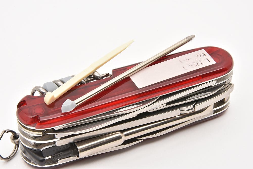 ラージブレード(大刃)/スモールブレード(小刃)/コルクせん抜き/マイナスドライバー1.5mm/カン切り|マイナスドライバー 3mm/せん抜き|マイナスドライバー6mm|ワイヤーストリッパー/リーマー(穴あけ)、千枚通し/はさみ/マルチフック/コンビネーションプライヤー|ワイヤーカッター|端子つぶし/ビットレンチ|ヘックスドライバー5mm(D-SUB コネクター用)|ヘックスドライバー 4mm(ビット用)|ヘックスビット 4|トルクスビット 8/ビットケース|スロットビット 4mm|フィリップス型ビット 0|フィリップス型ビット 1|フィリップス型ビット 2|トルクスビット10|トルクスビット15/キーリング/ピン/ピンセット/つまようじ/加圧ボールペン/カン切り/せん抜き/コンビネーションプライヤー/ビットレンチ/ ビットケース |
