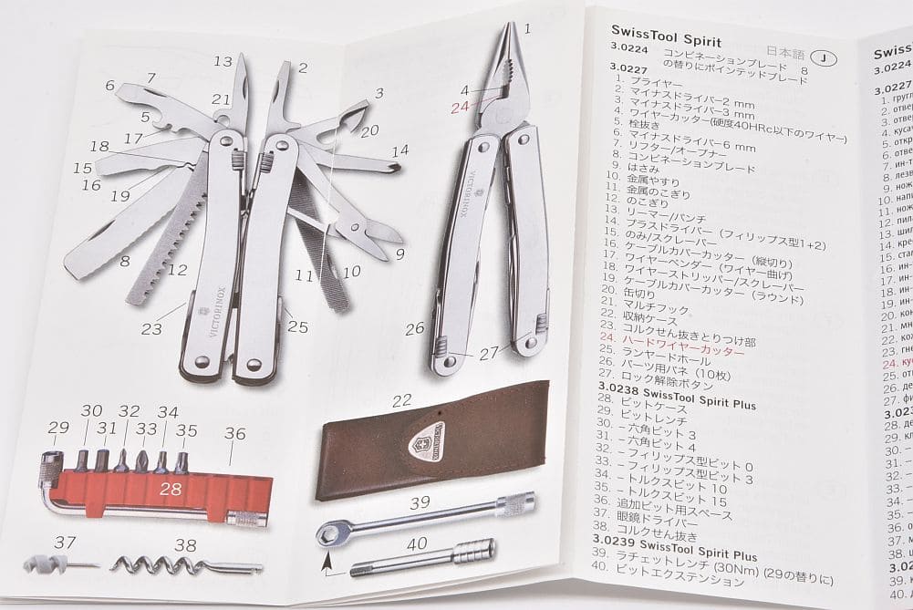 24の機能とロック機構を搭載し、コンパクトでエレガントなデザインのアウトドアや災害時などに活躍する『スイスツール スピリット』でございます。表面に僅かな展示スレがございますが、未使用の商品でございます。 |