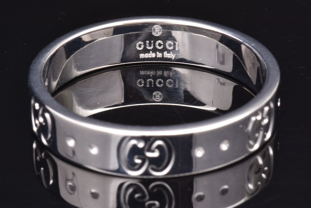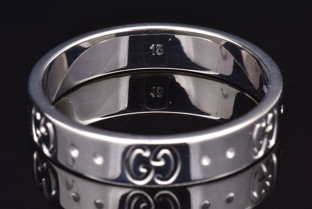 グッチ アイコン スリムリング インターロッキングG K18WG ホワイトゴールド #15【美品】