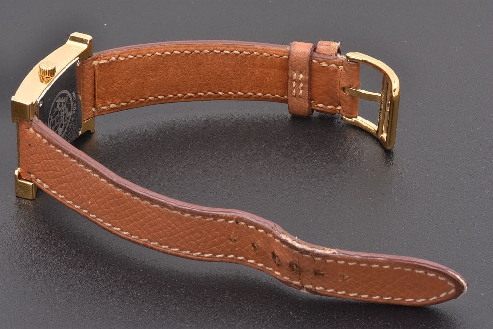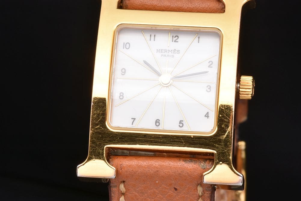 | 商品説明 | エルメスの定番人気モデル、Hウォッチ レディース クォーツ HH1.210でございます。部分的にメッキの剥がれやスレ・小傷はございますが、深い打痕等は無く比較的キレイな状態でございます。ガラスに面傷があり、ベルトは使用に伴うスレや汚れ、表面のヒビ割れ等あるものの使用上問題となるダメージは無く、まだまだお使い頂けます。 |