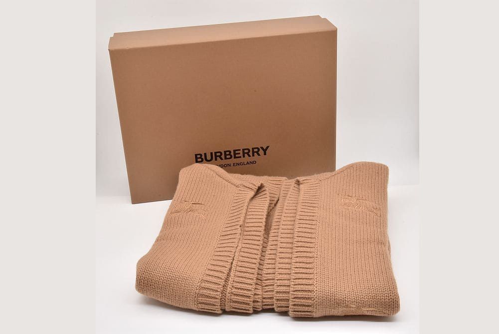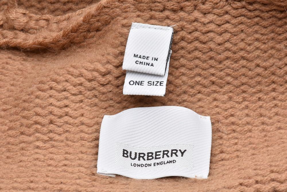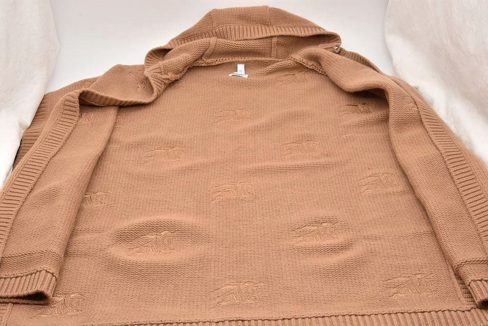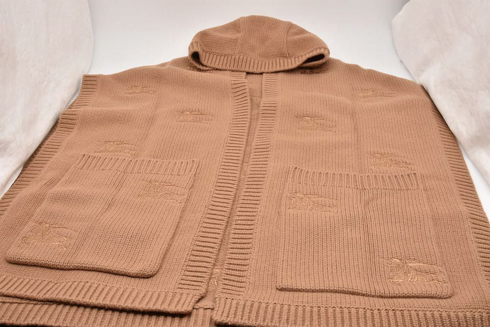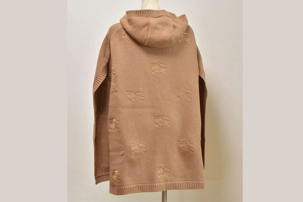 バーバリー ナイト刺繍 ケープ フード付き ポンチョ ウール カシミヤ ベージュ 8065045【未使用】