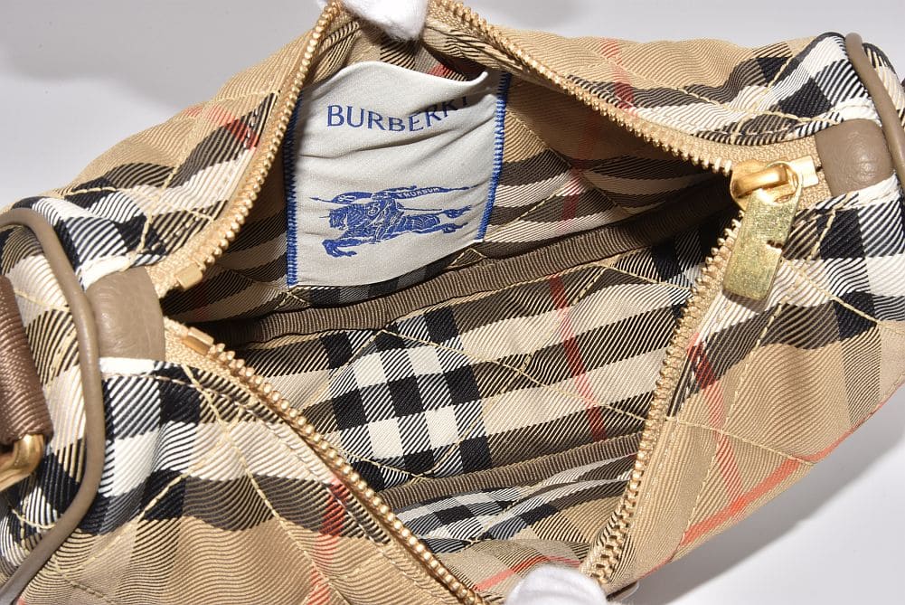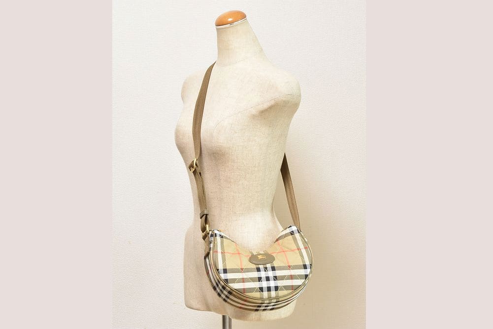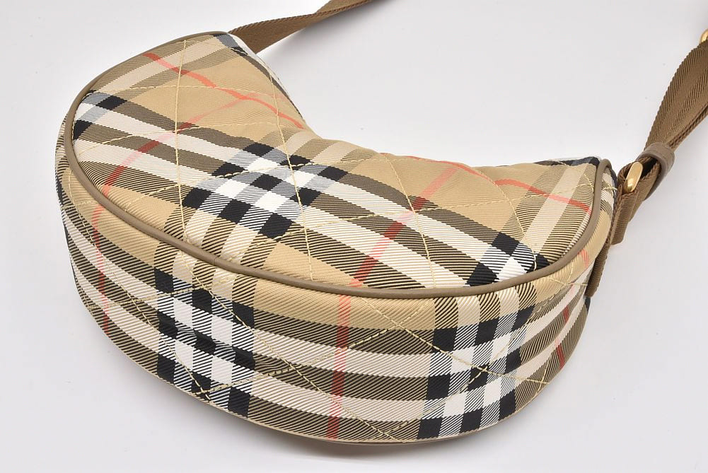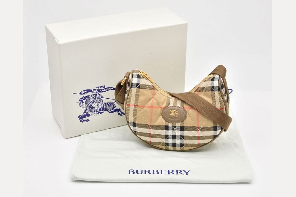 キルティングナイロンにバーバリーチェックがデザインされた『ホースシュー クロスボディバッグ』でございます。 |