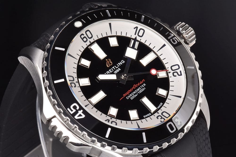 | 商品説明 | ブライトリングを代表するモデルの一つ「スーパーオーシャン」を現代に引き継ぐモデル、スーパーオーシャン オートマチック 46 A17378211B1S1(A17378)でございます。提携業者にて内部点検及び時間調整をしておりますの安心してお使い頂けます。新品仕上げもしており僅かな残り傷程度で大変キレイな状態でございます。コーティングにスレ傷があるものの、ガラス自体の傷は無く、保証書などの付属品も揃っております。 |
