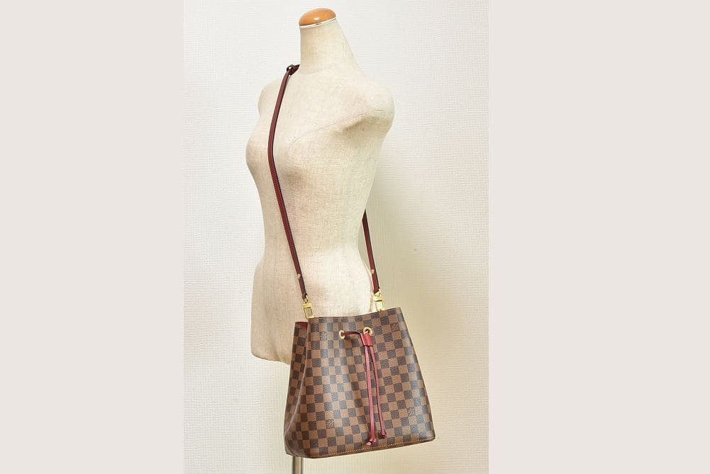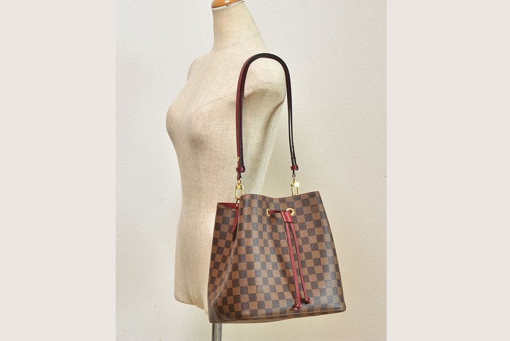 | 商品説明 | ダミエ・キャンバスとカーフレザーを組み合わせた、ショルダーストラップの長さを調整してクロスボディバッグとしてもお使いいただける機能的なバッグ『ネオノエ』でございます。金具部分やファスナーに細かなスレ、底面に若干のクセが見られますが、使用感の少ないキレイな状態でございます。 |