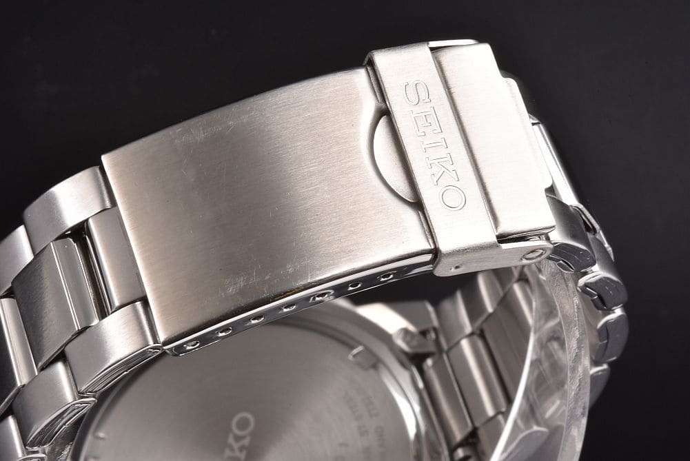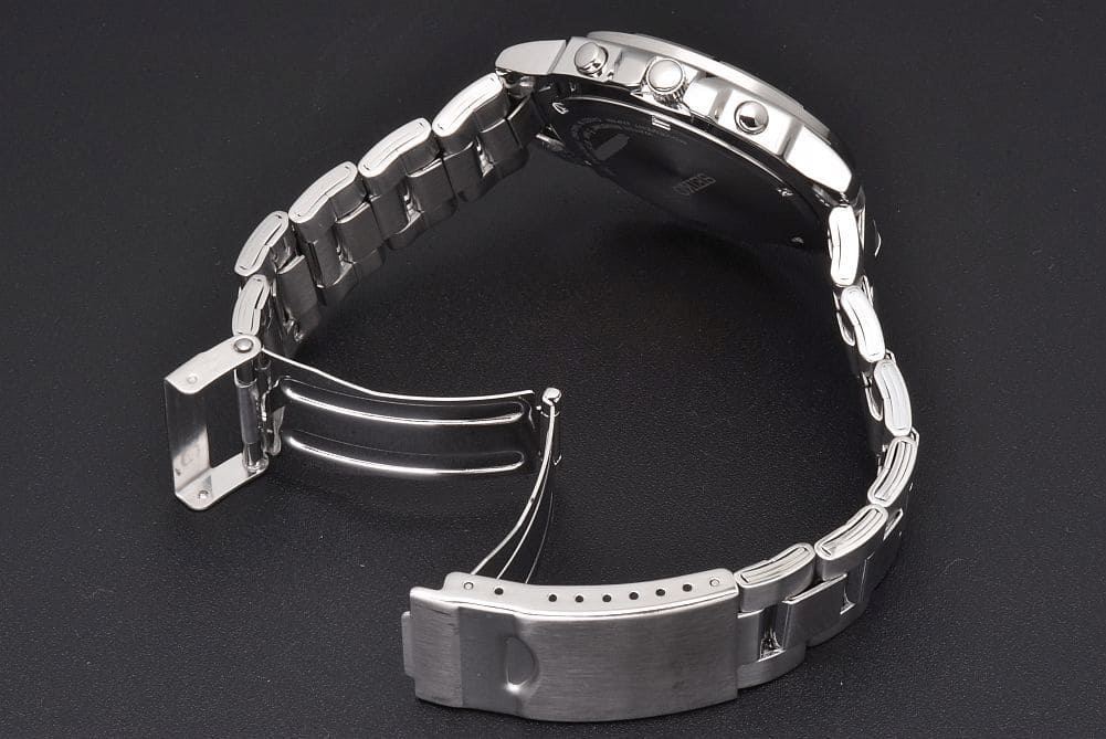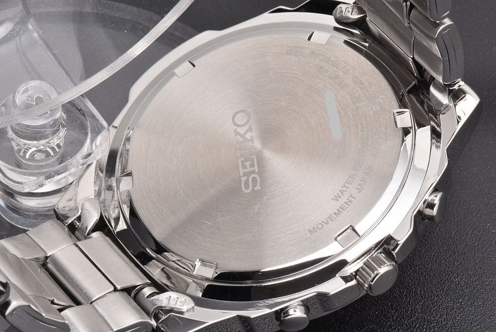 日本製ムーブメントを搭載し、主に海外の市場で流通している逆輸入モデル、クロノグラフ SND495P1(7T92-0CA0)でございます。部分的にスレや小傷はございますが、比較的キレイな状態でございます。ガラスの傷はなく、保証書などの付属品も揃っております。 |