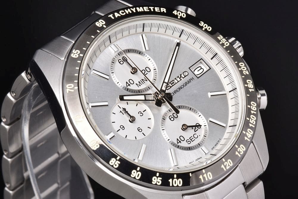 クロノグラフ デイト表示 タキメーターベゼル 10気圧防水など |