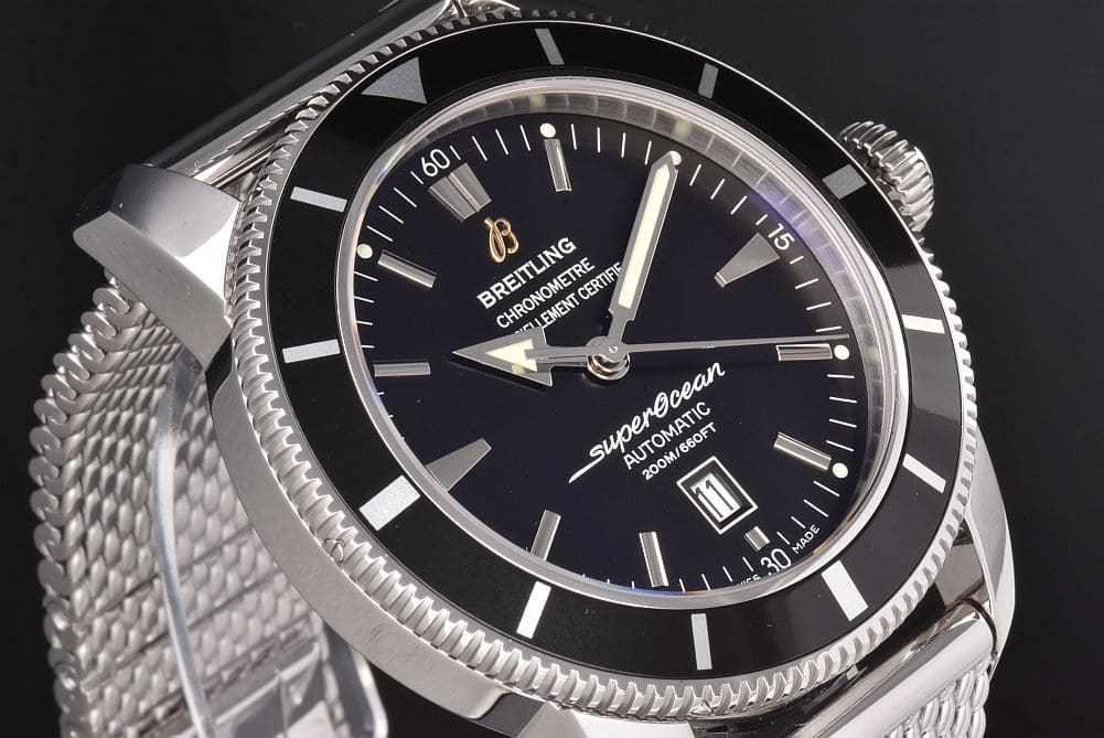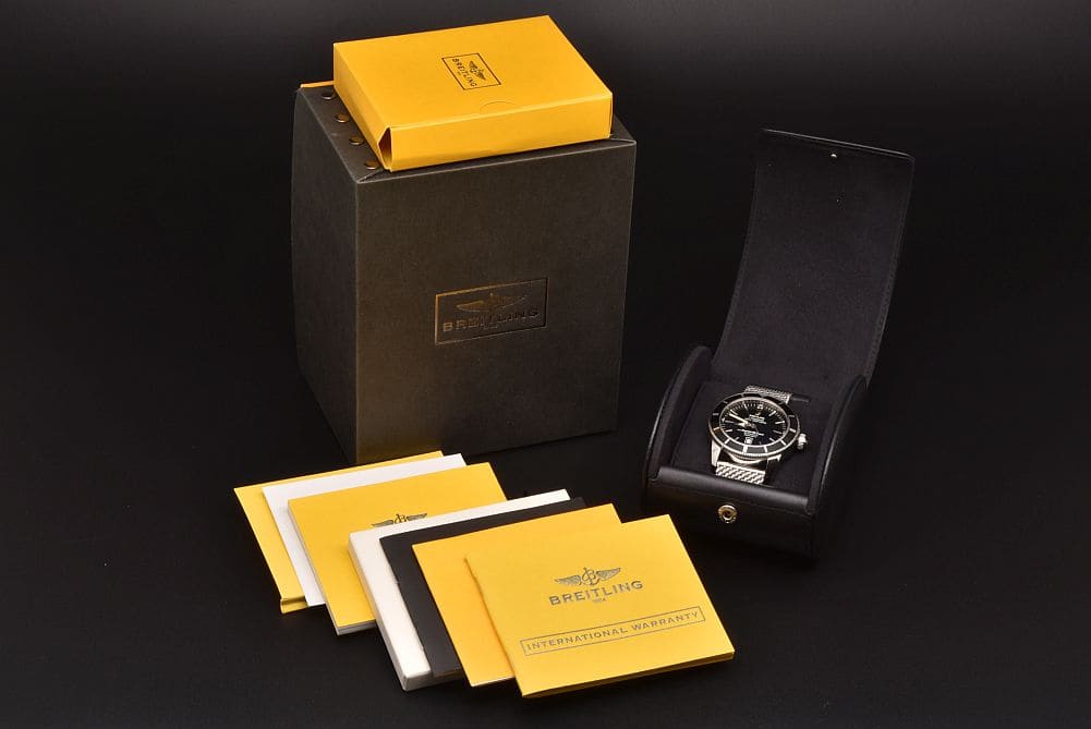 | 商品説明 | ブライトリングを代表するモデルの一つ「スーパーオーシャン」を現代に引き継ぐモデル、スーパーオーシャン ヘリテージ 46 A172B68OCA(A17320)でございます。部分的に僅かなスレや小傷があるものの、気になる深い傷は無く大変キレイな状態でございます。ブレスはフル駒で、ガラスの傷は無く保証書などの付属品も揃っております。 |