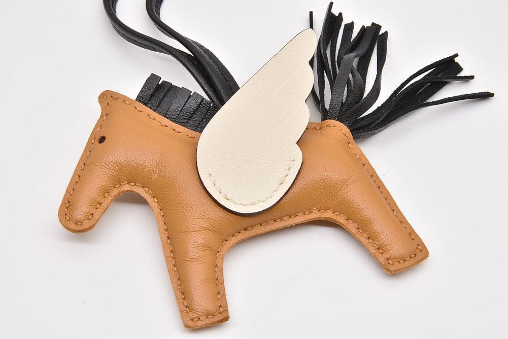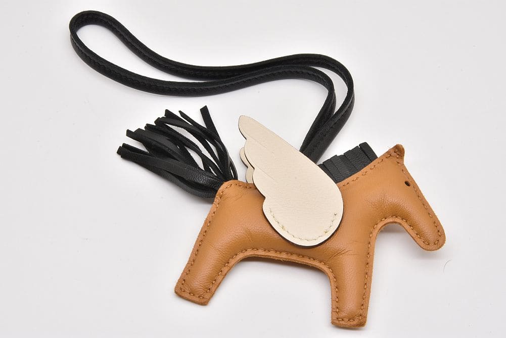 柔らかく、しなやかなレザーにふっくらとしたデザインが可愛らしいエルメスのバッグチャームでも人気の高い『チャーム ロデオ ペガサスPM』でございます。若干の保管癖と表面に少々のシワが見られますが未使用の商品でございます。 |
