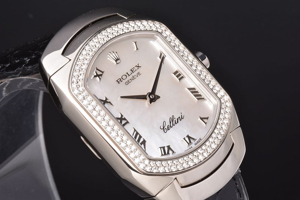 ロレックス M6691/9 チェリーニ チェリッシマ ダイヤベゼル レディース K18WG/革 クォーツ シルバーシェルローマ文字盤 6691 K番
