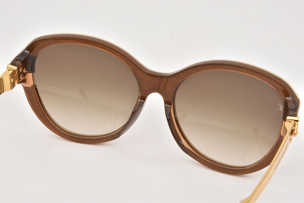 | 商品説明 | ブラウンのフレームにトランクの錠前部分から着想を得たヒンジが特徴的な「サングラス プティ スプソン・キャットアイ」でございます。レンズに僅かなキズ、ヒンジ付近のメッキに少々の劣化、フレームに若干の歪みが見られますが、使用上目立つダメージはございません。 |