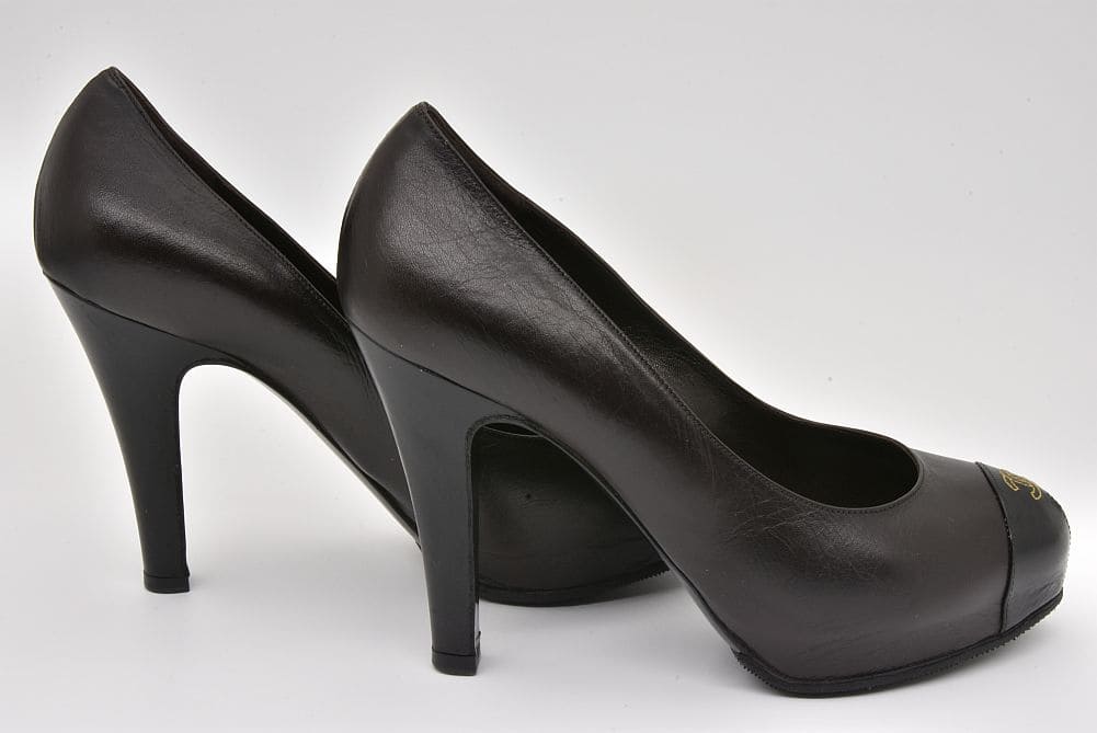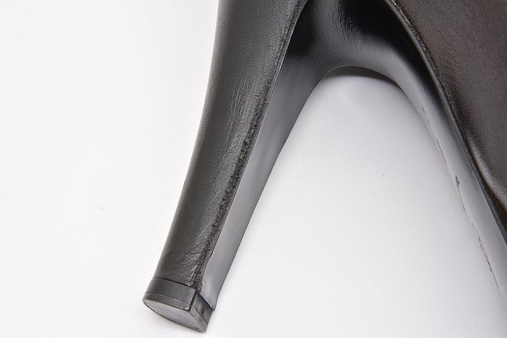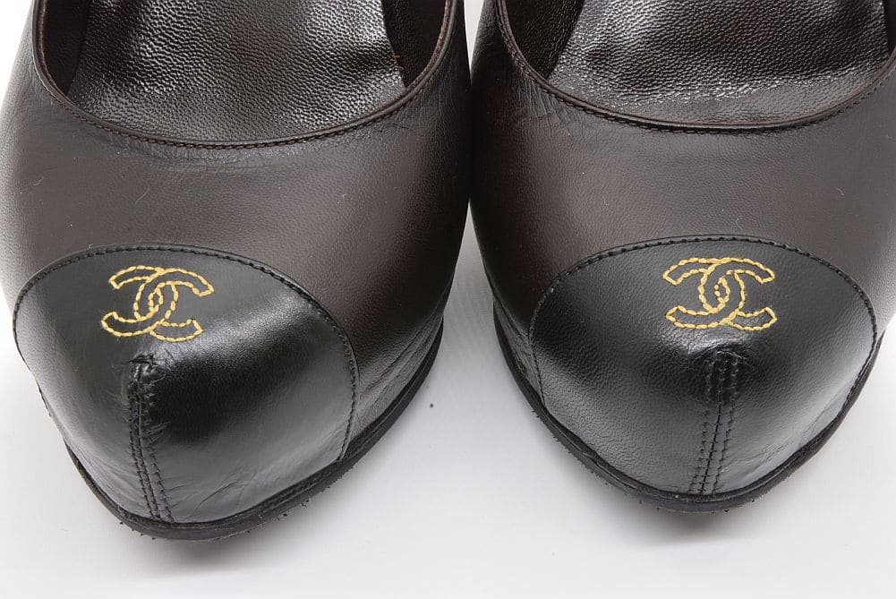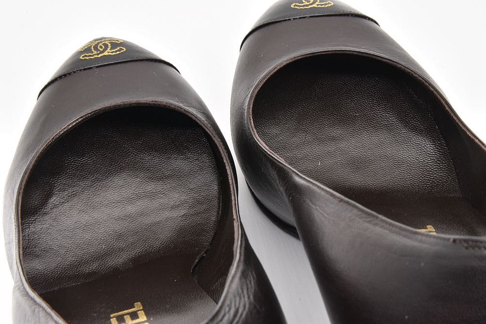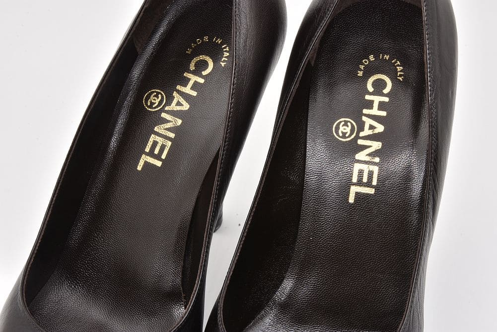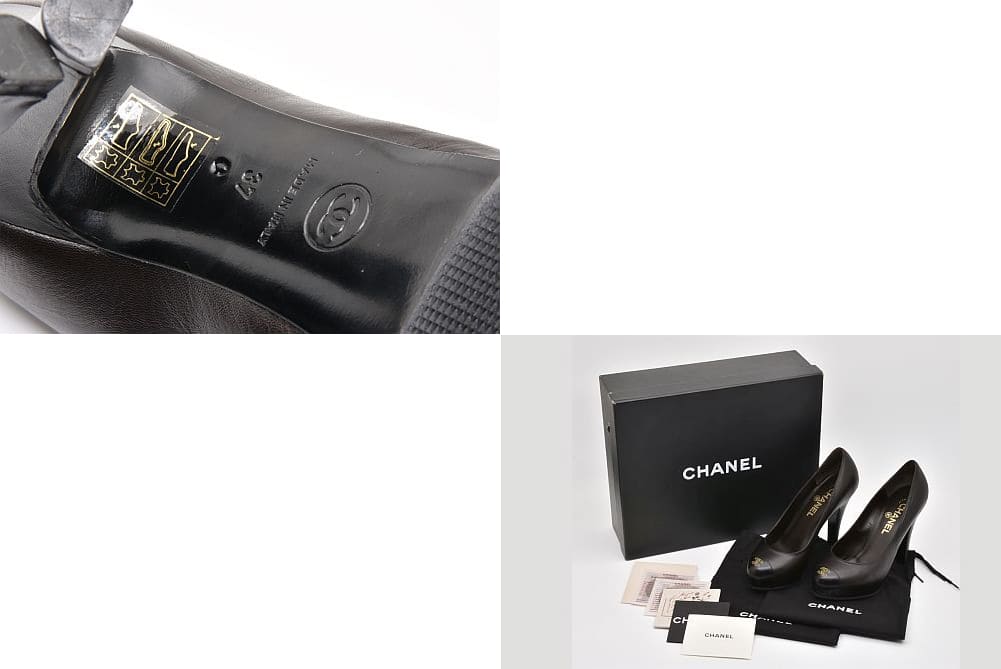 シャネル レザー パンプス ハイヒール ココマークステッチ ブラック #37