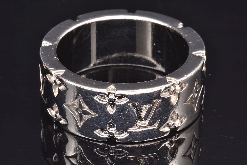 アイコニックな「モノグラム・パターン」がデザインされた『リング・LVモザイク』でございます。表面や内側に細かなスレやキズがございますが、使用上目立つものではございません。 |