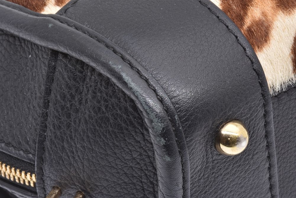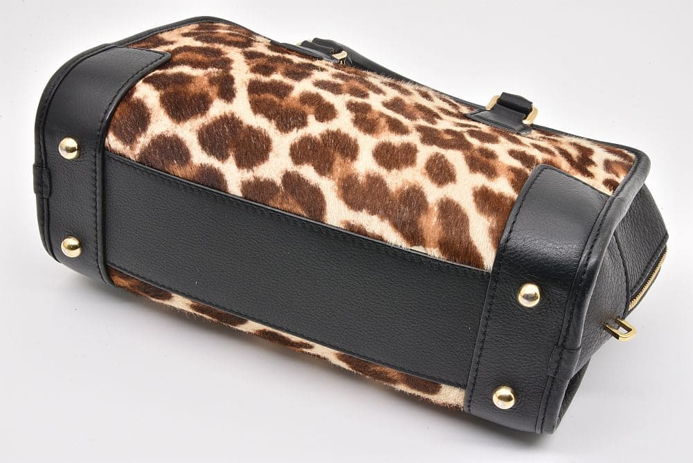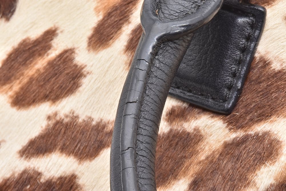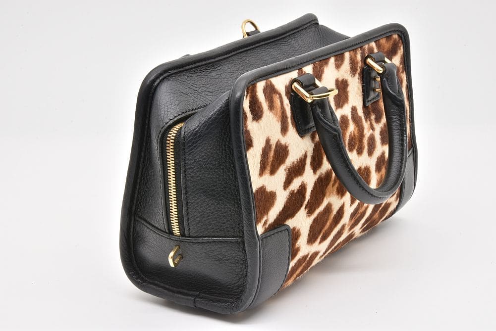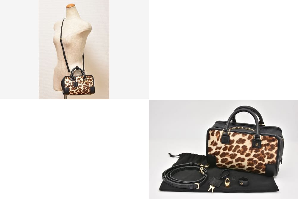 | 商品説明 | ロエベを代表する「アマソナ」のレオパード柄が印象的な『アマソナ23』でございます。金具部分やファスナーにスレ・変色、外側に角スレや若干の型崩れ、ハラコ部分に変色や毛が薄くなっている部分が見られます。内側に細かなキズ、ハンドルやショルダーストラップの縁にひび割れ等の使用感が見られますが、壊れ等の大きなダメージはございません。 |