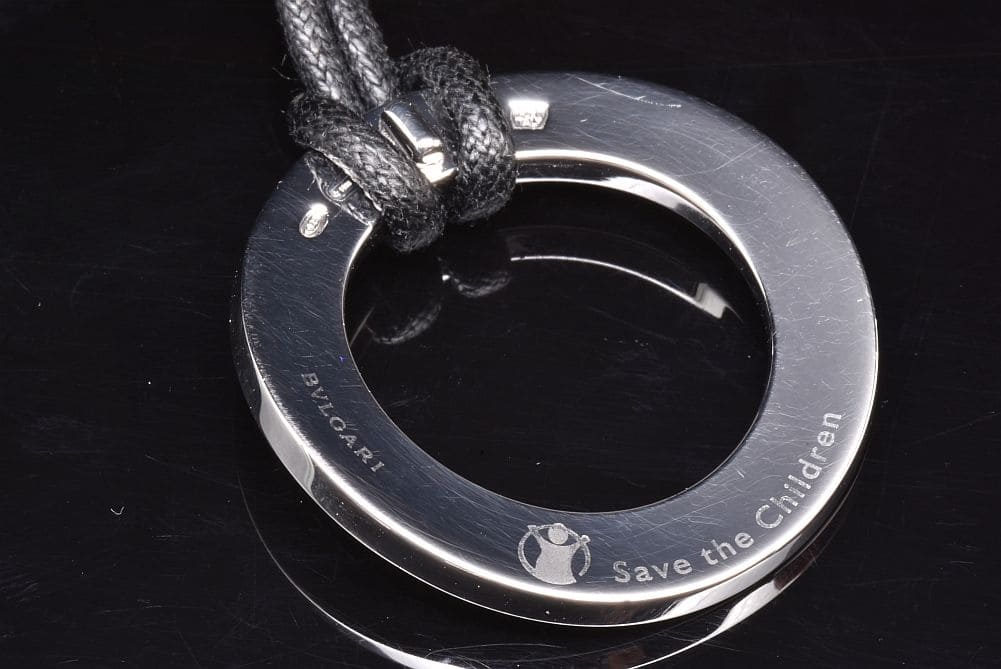 長年ブルガリとパートナーシップを結んできた「セーブ・ザ・チルドレン」のサークルペンダントネックレスでございます。ペンダントに細かなスレがございますが、目立つ大きなダメージはございません。 |