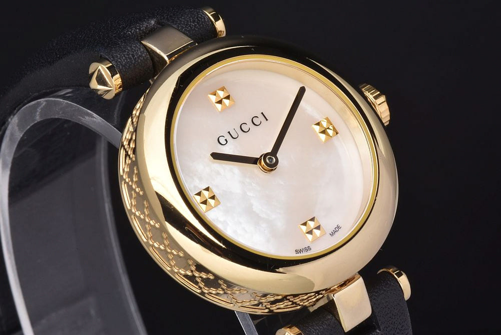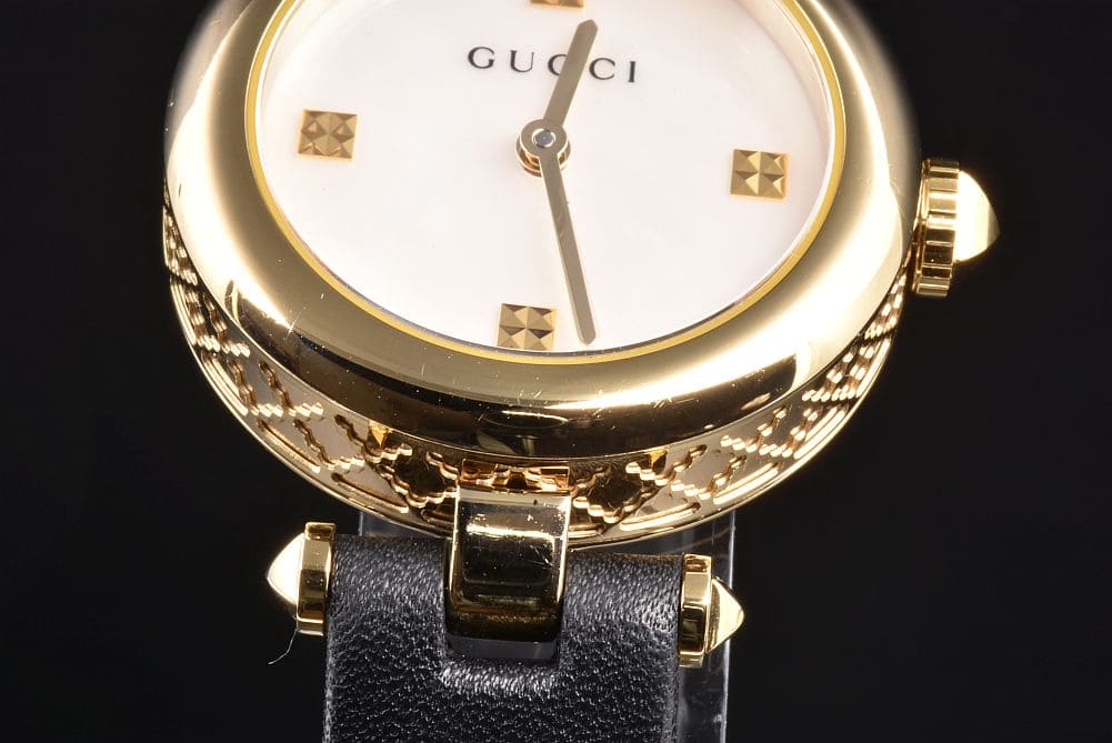グッチ YA141505 ディアマンティッシマ レディース GP/レザー クォーツ 141.5 シルバーシェル文字盤